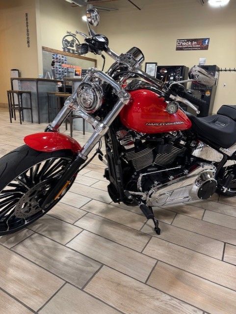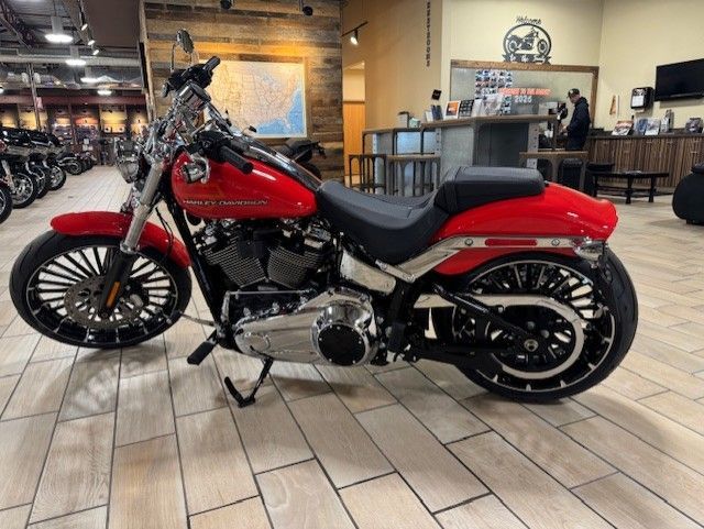 WHY BLEND IN WHEN YOU CAN BREAK OUT? With 34 degrees of rake in the neck, a bobtail fender, and a 240mm rear tire, the 2026 Breakout feels like a factory-built street sweeper. But don't get lost in the long-and-low chopper lore. This bike also offers USB-C charging, Rider Safety Enhancements standard, a monster Milwaukee-Eight 117 Custom, two new paint options, and much more.