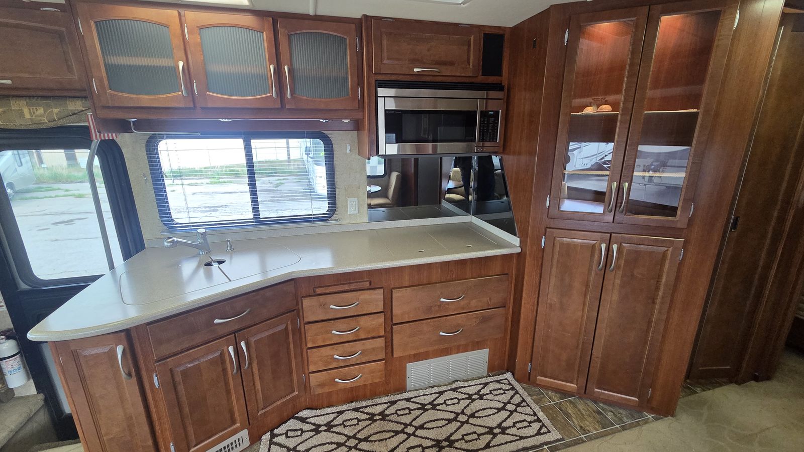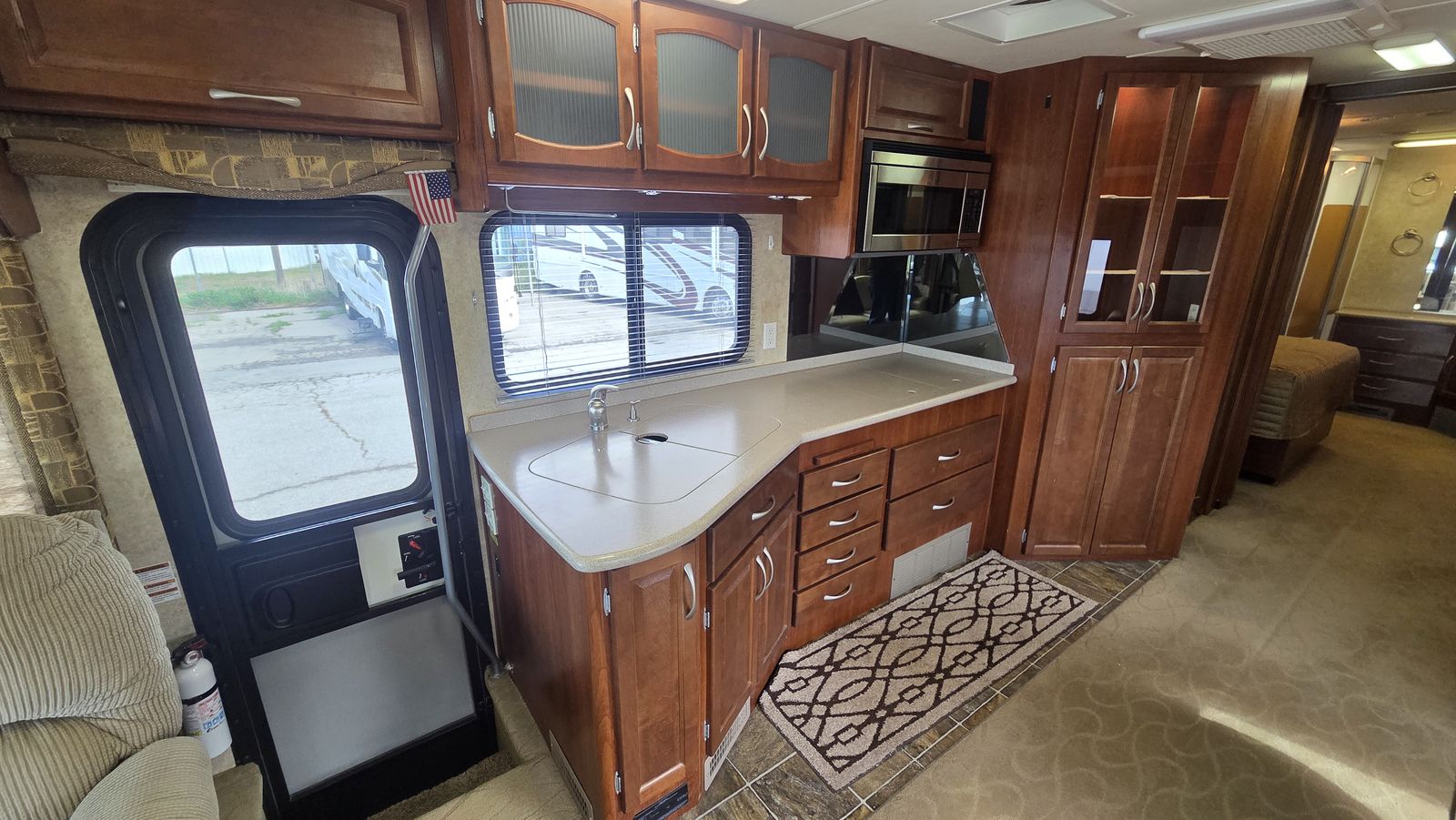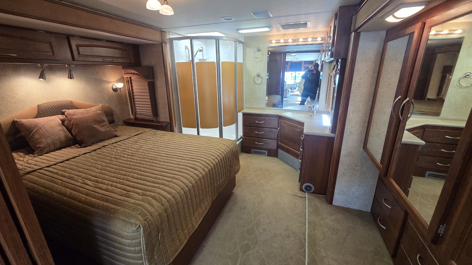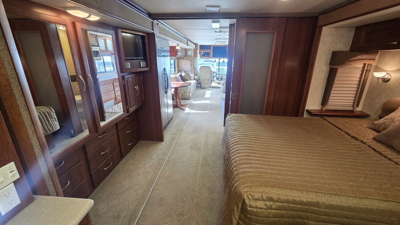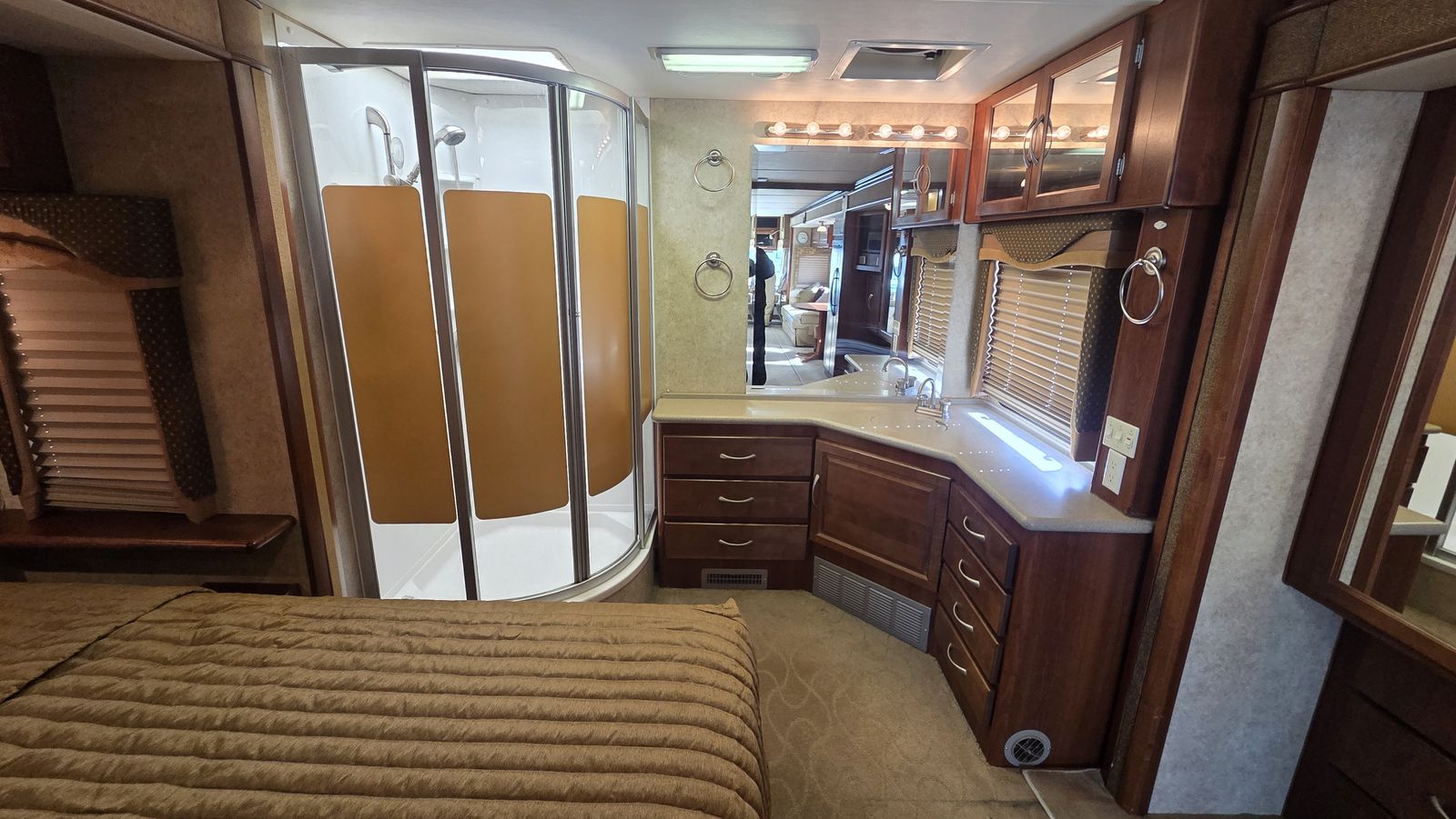 This Pace Arrow 36D stands out for its spacious layout and higher-end finishes for its class. The full wall slide dramatically increases living space, while the split bath design improves usability and privacy.
