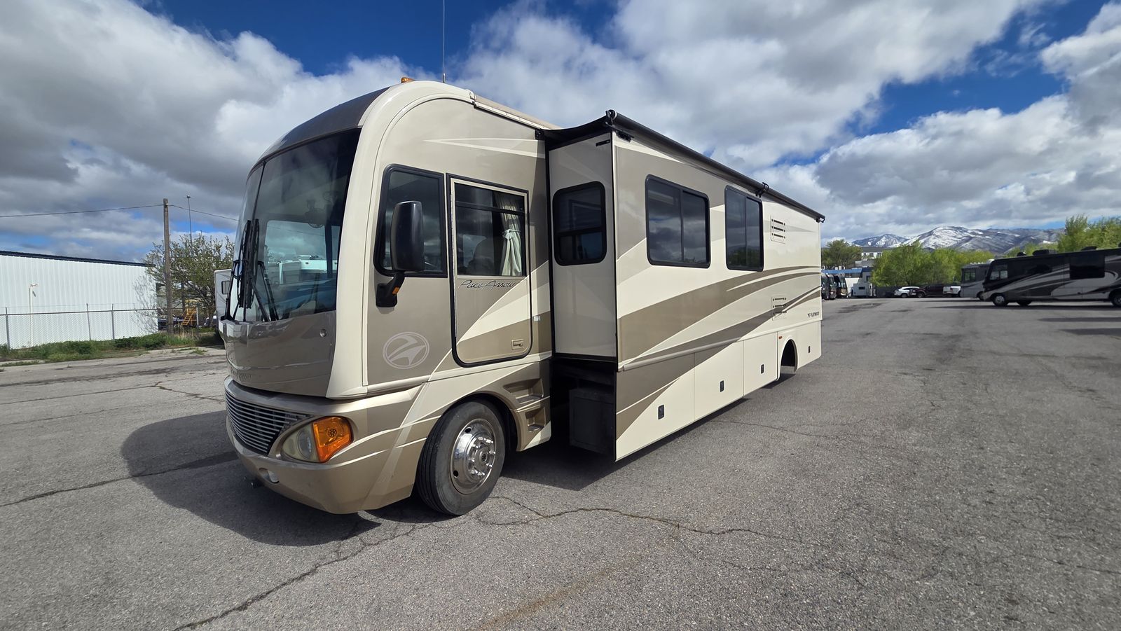 Built on the Workhorse W24 chassis, this 2005 Fleetwood Pace Arrow 36D is a well-cared-for trade-in with full body paint and a reputation for comfort, space, and reliability. With 61,257 miles and 950 generator hours, this coach has been maintained and shows very clean.