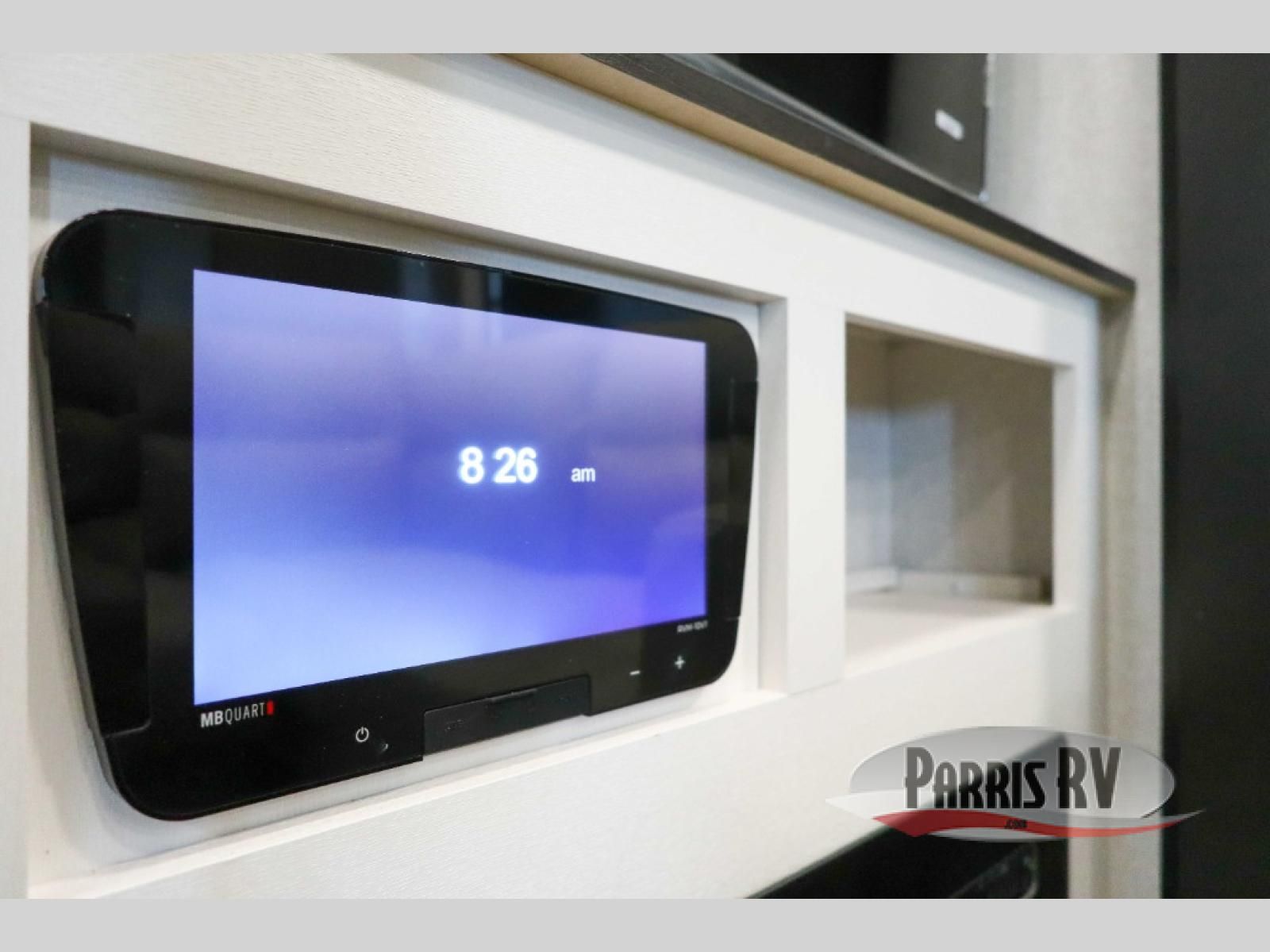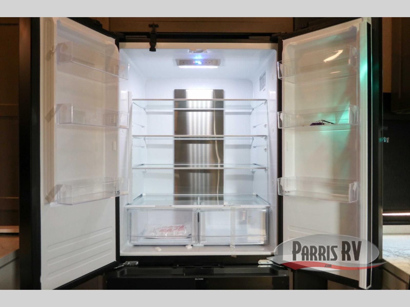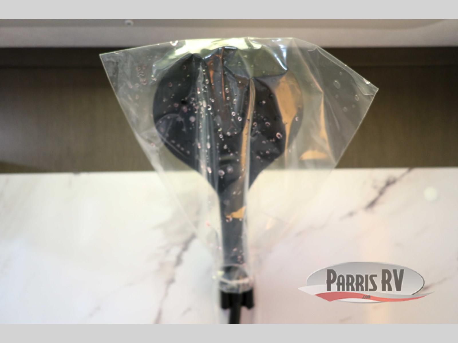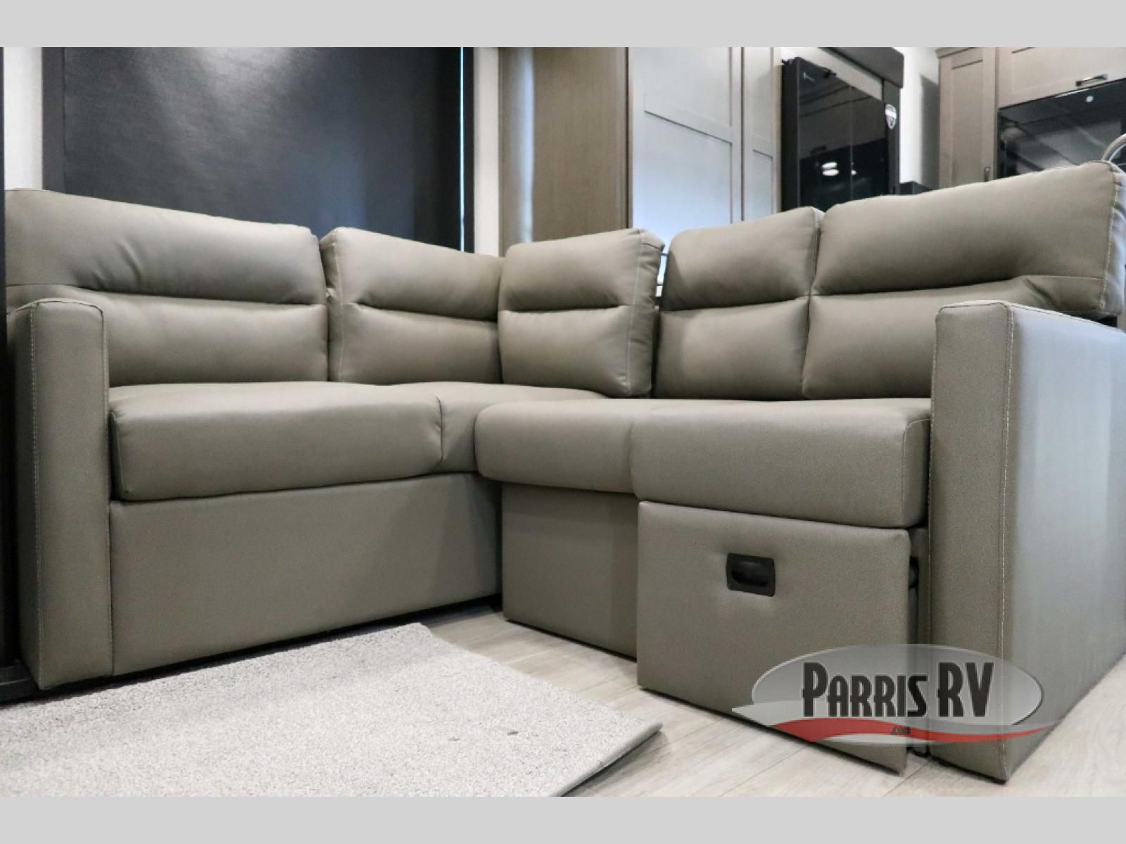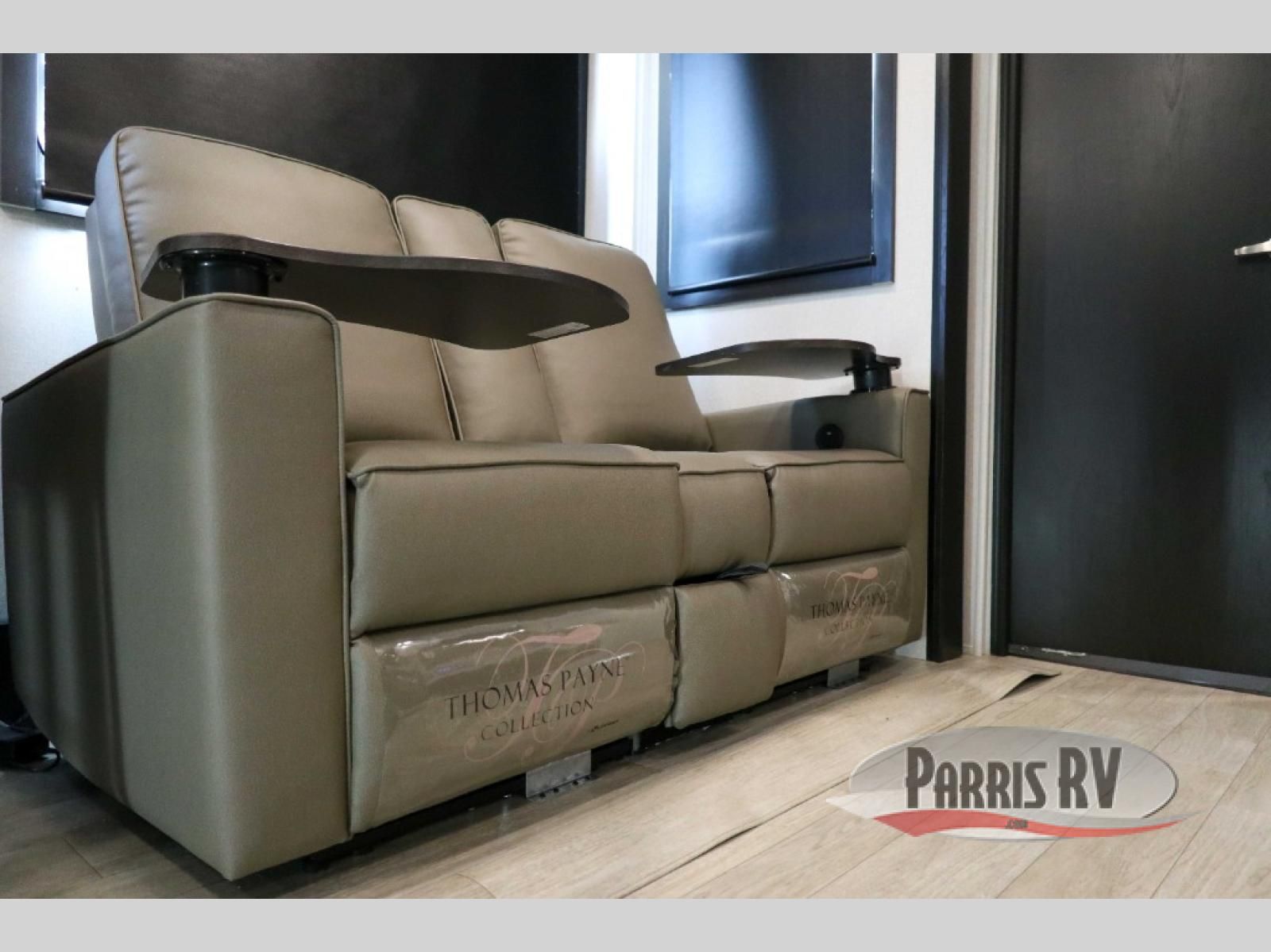 Get on the road with this toy hauler fifth wheel! The 14' garage is a playground for your toys, offering ample space for your ATV, motorcycle, or other gear. The loft above provides additional storage and an electric queen bed for a comfortable rest. The living room is a haven for relaxation, featuring an L-shaped sofa and a theater-style seat perfect for enjoying your favorite shows or movies on the TV. The kitchen is a culinary delight, equipped with a 12V refrigerator, microwave, overhead cabinets, and ample countertop space. The credenza with roll-out table is perfect for meal prep or serving, and the full bathroom provides a private space to freshen up, while the half bath option in the garage gives you more options. The cherry on top is that the front bedroom is a regal retreat, featuring a king bed, drawers, and a spacious walk-in closet.