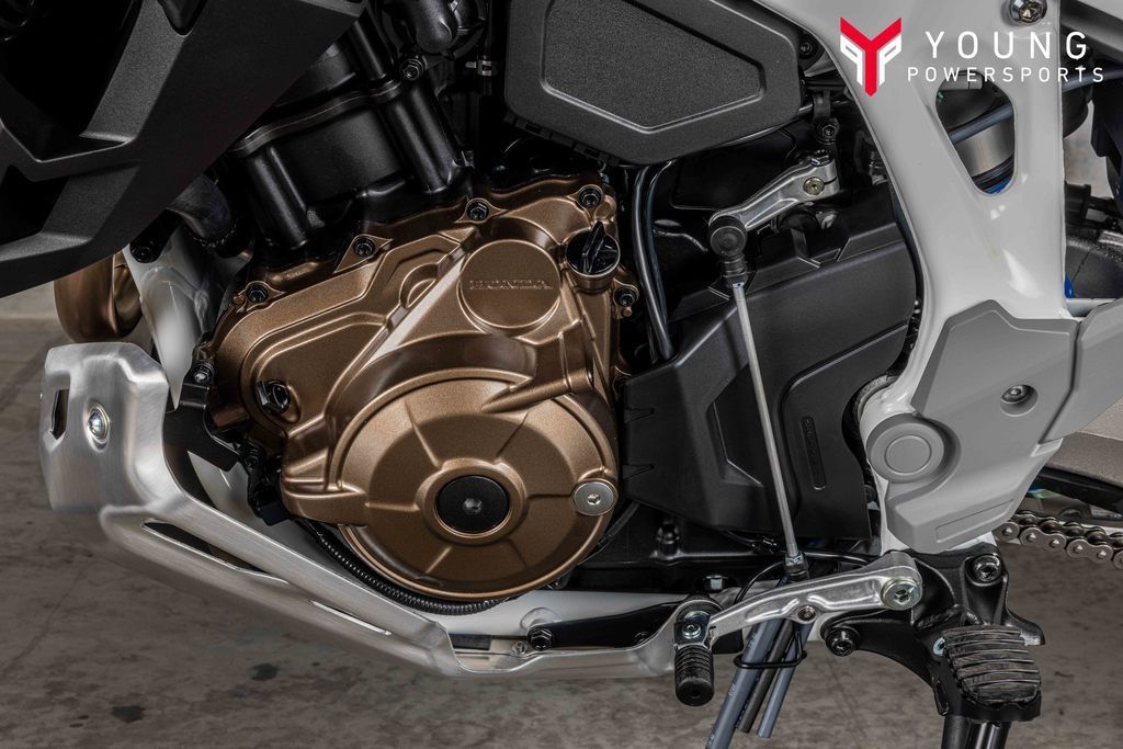 2025 Honda® Africa Twin Adventure Sports ESADVenture beyond limitsAdventure calls in two options: the Africa Twin and Africa Twin Adventure Sports ES. Both pack a powerful 1083cc engine and long-distance comfort, plus optional DCT. The standard model journeys off-road with its 21-inch front tire, while the Adventure Sports ES goes the road route with electronic suspension and a 19-inch front wheel. Your journey starts here!Features may include:1083cc twin-cylinder engineA narrow 1083cc parallel-twin engine delivers torque smoothly throughout the RPM range, making them great for everything from off-road riding to highway cruising.Cruise controlAll Africa Twin models come factory-equipped with cruise control for touring, and you’ll thank us after those high-mileage rides. Low center of gravityBy placing heavy components like the battery near the bike's center of gravity and using a compact engine, we've created a platform for excellent handling.TFT touchscreen displayA 6.5-inch Thin Film Transistor (TFT) instrument touch panel features three displays and can show a multitude of information, depending on your needs.Selectable ABSThese bikes come with a three-mode Anti-Lock Braking System (ABS): On-Road, Off-Road, and a rear ABS removable mode that can be turned off for dirt riding.Riding modesBoth models offer six selectable riding modes: Tour, Urban, Gravel, Off-Road, User 1, and User 2. The last two allow you to customize them to your individual preferences.Apple CarPlay™ and Android Auto™Apple CarPlay™ and Android Auto™ are standard on all models and seamlessly integrate with your mobile device, allowing easy access to calls, texts, maps, music, and more.