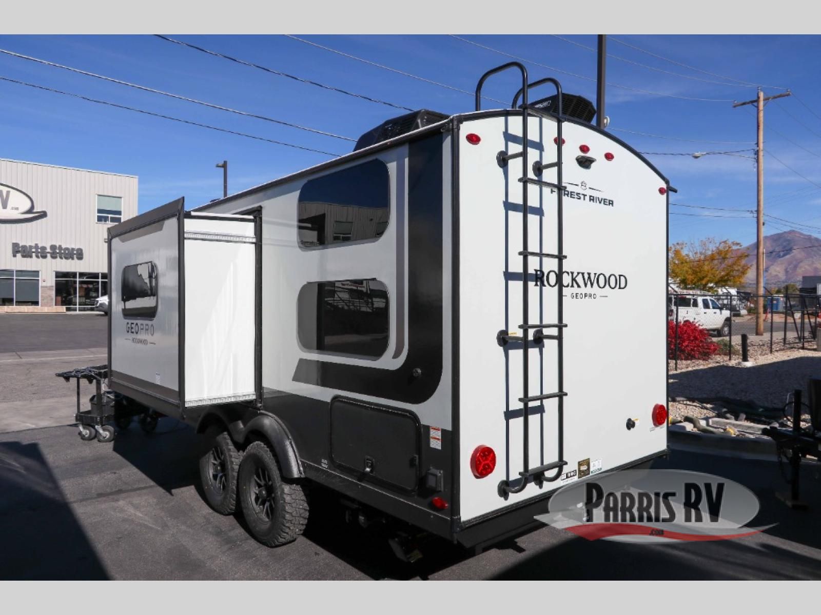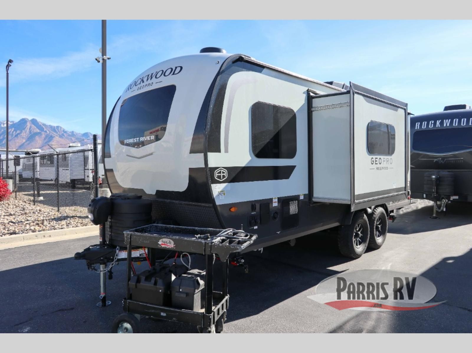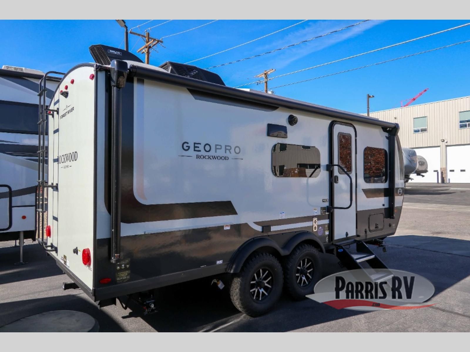 With any Rockwood GEO Pro travel trailer by Forest River you will enjoy easy towing, durable construction, and off-road capabilities with a fully laminated roof! Each model is constructed with complete composite wall construction for added strength and durability, and Dexter® axles that will make towing easier than ever. Inside, you'll find sleek back up camera prep for added security, a refrigerator and a microwave, plus many other interior amenities that will make you feel at home on the road.
