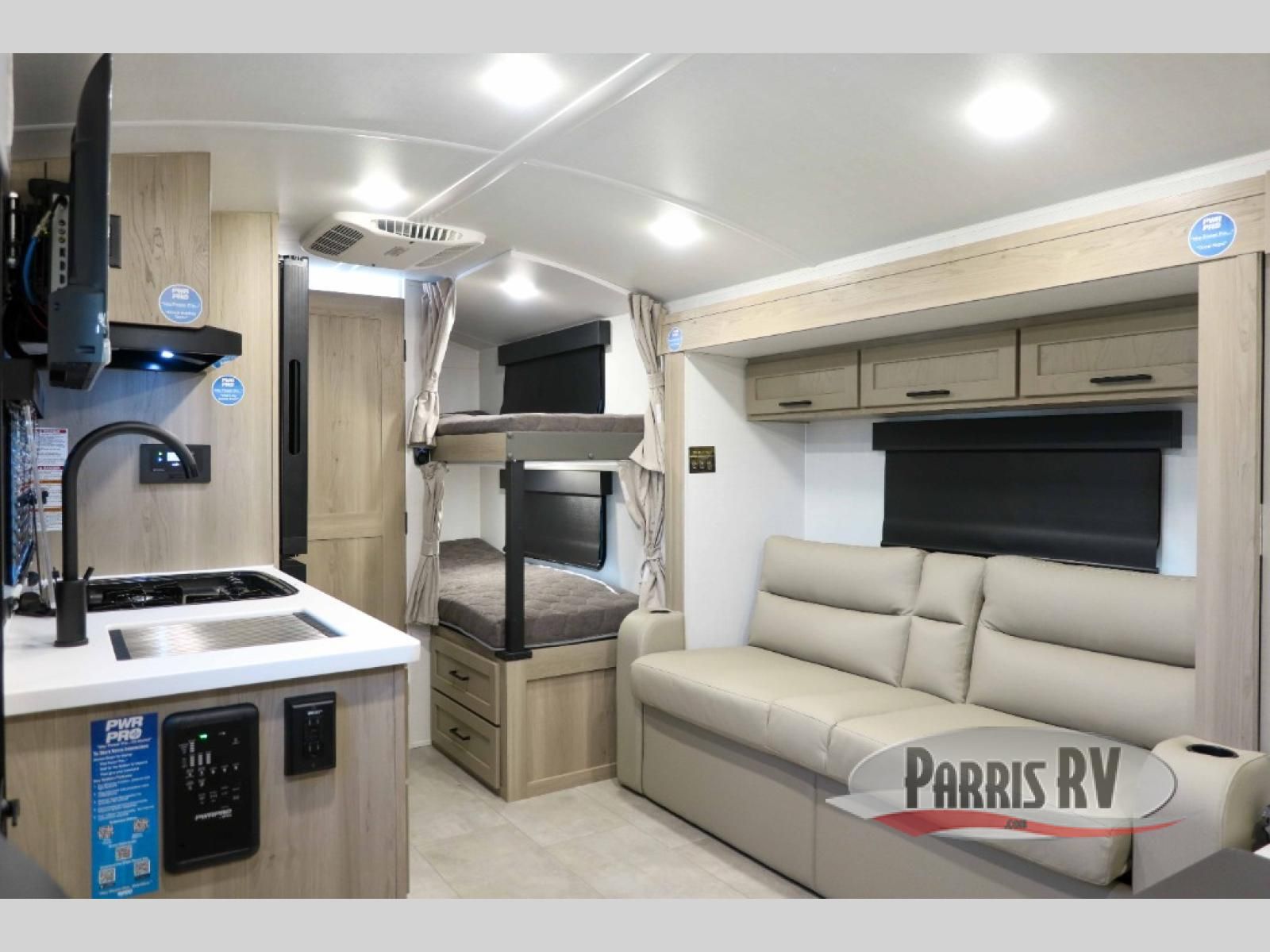 Perfect for families, couples, or friends, this trailer offers a great balance of comfort and practicality! Sleeping spots can be found in the bunk beds, which provide a cozy sleeping spot for kids or guests, while the 54" x 74" Murphy bed offers a spacious and comfortable sleeping area for two. Moreover, the kitchen is equipped with a three-burner cooktop for gourmet meals, a convection microwave for quick and easy cooking, and a fridge. The 39" dinette provides a comfortable spot for meals and snacks, perfect for enjoying quality time with family and friends. The 30" x 15" table provides additional space for dining, working, or playing games, and the sofa provides a comfortable seating area for relaxation and socializing, plus, the full bathroom provides a convenient spot to freshen up after a long day of exploring.