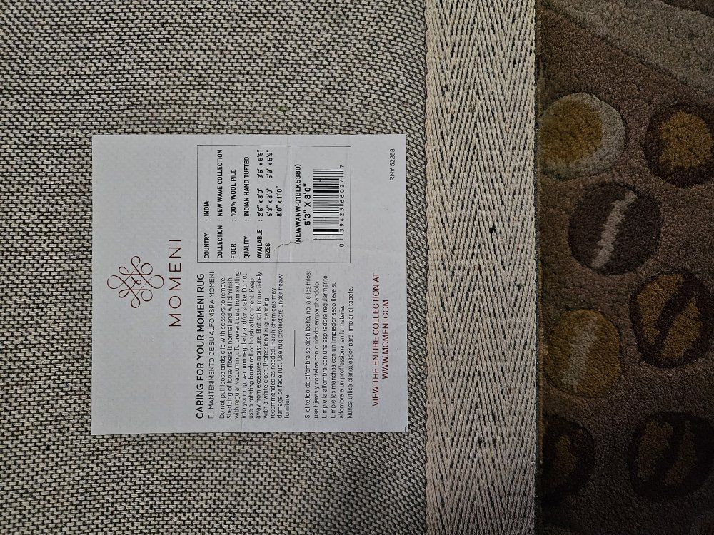 5'3" x 8' wool Momeni New Wave Area rug. Barely used in a house with no pets, no children, no smoking, no outdoor shoes inside.