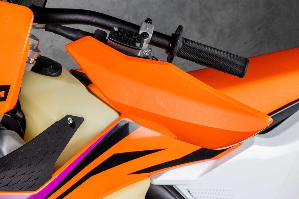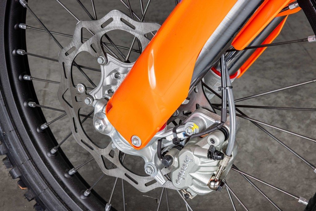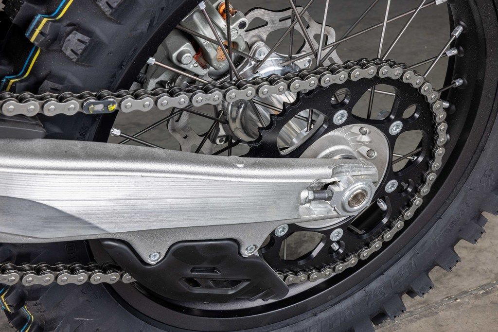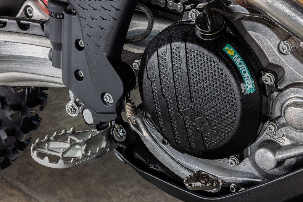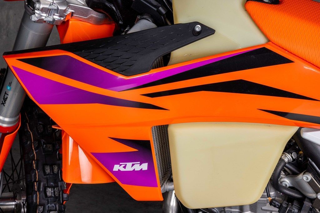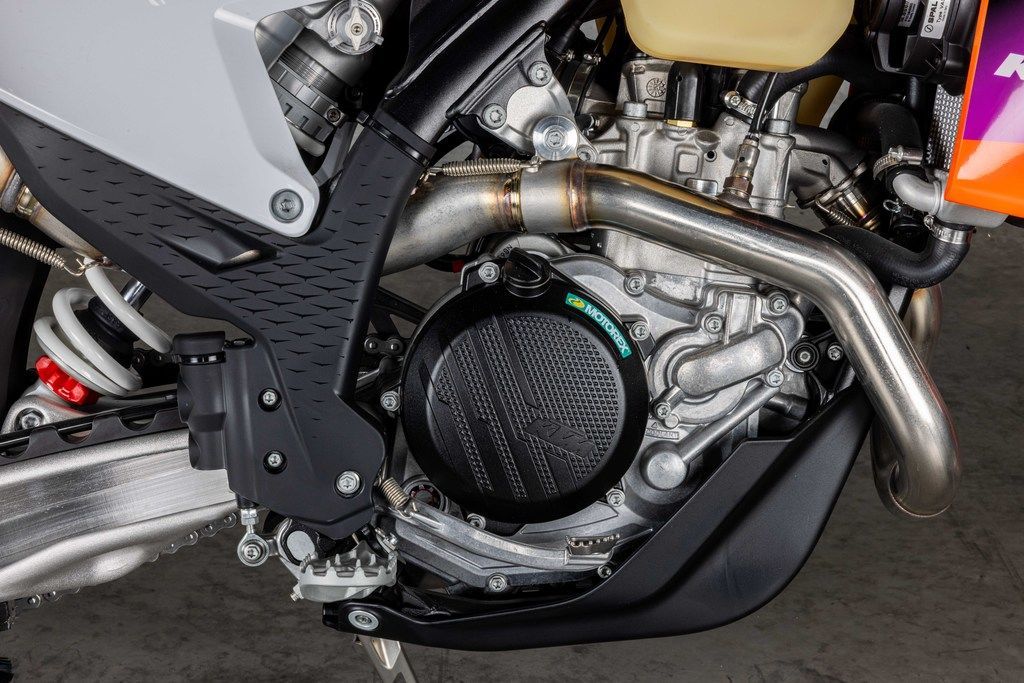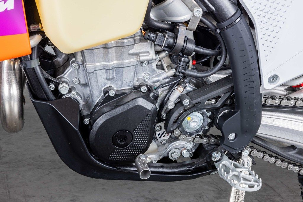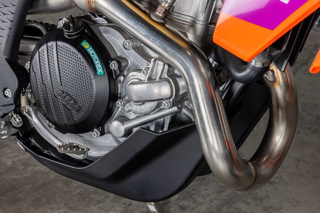 Warp speed, engaged! The KTM 500 XW-F is an undeniable powerhouse. Weighing in at a mere 65 lb (29.5 kg), it's not only more powerful but lighter than the previous generation engine too. For 2024, it's been designed with mass centralization in mind, tilting the engine 2° backwards and repositioning the sprocket 3 mm lower. The result? An improved center of gravity, better handling, maneuverability, and anti-squat behavior.