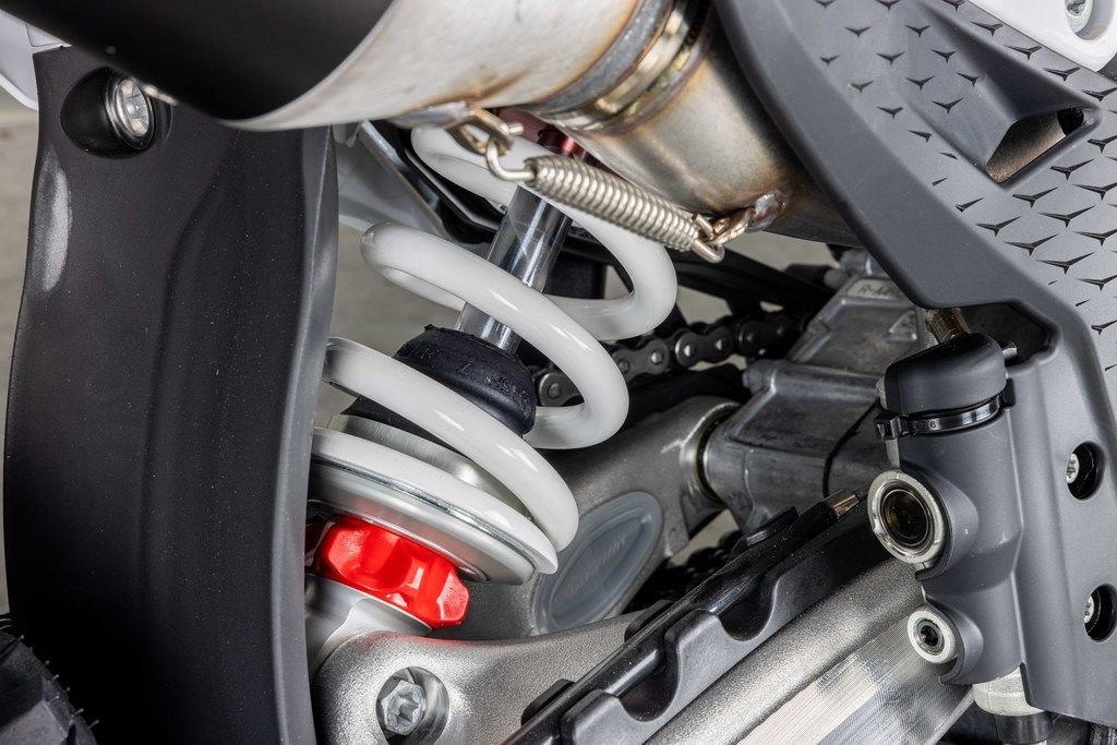 Maximum airflow with minimal water intrusion, a new air filter box is designed with precisely positioned inlet ducts aimed at preventing air deformation and maintaining filter protection. An enduro-specific splash protector under the airbox prevents water or dirt from splashing up from the rear wheel, while the Twin Air filter and air filter support design feature a simple fail-proof mounting system for secure and accurate filter installation, ensuring the air filter is easily accessed, without tools, for fast track-side maintenance.