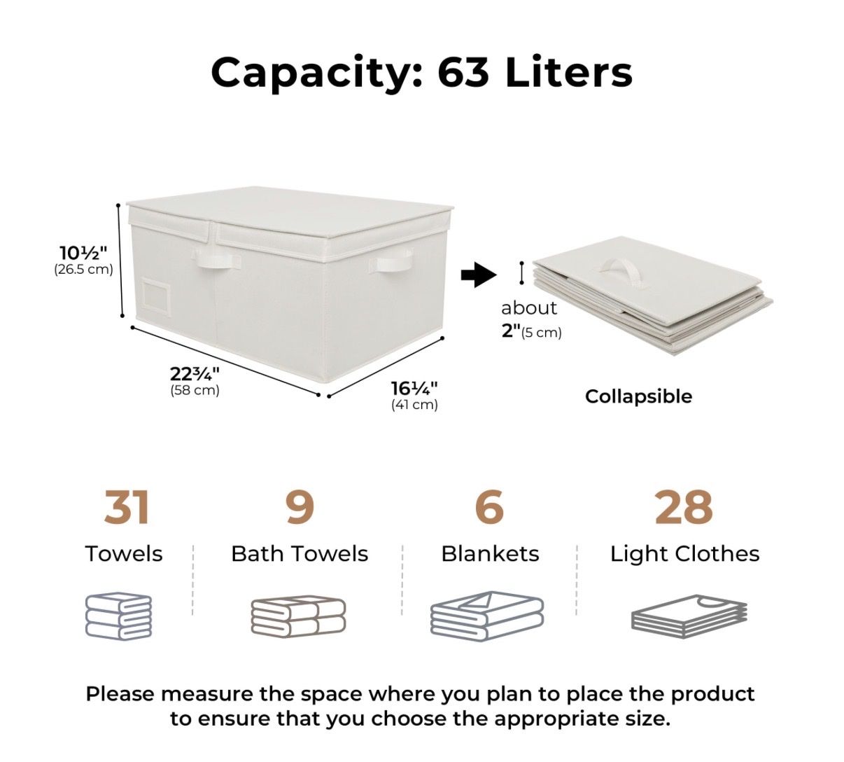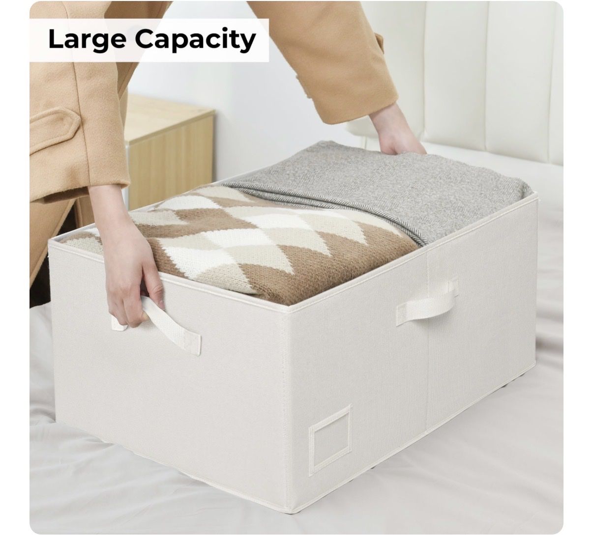 GRANNY SAYS Fabric Storage Bins with Lids, Decorative Storage Boxes, Closet Basket for Shelves, Extra Large Storage Bins for Clothes, Toy Storage Chest, Ivory, 2-Pack