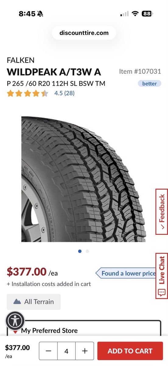 These came off my 2026 Toyota Tundra under 500 miles. Almost new. Size 265/60 R20.