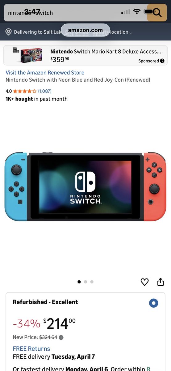 Sweet like new Nintendo switch in excellent working condition! Looks and works awesome! Comes as shown with charging cord! in great condition! This exact unit is 214.00 on Amazon right now refurbished as shown in photos! Don’t pay retail prices, call Dustin instead at 801-205-3404. I need it gone!
