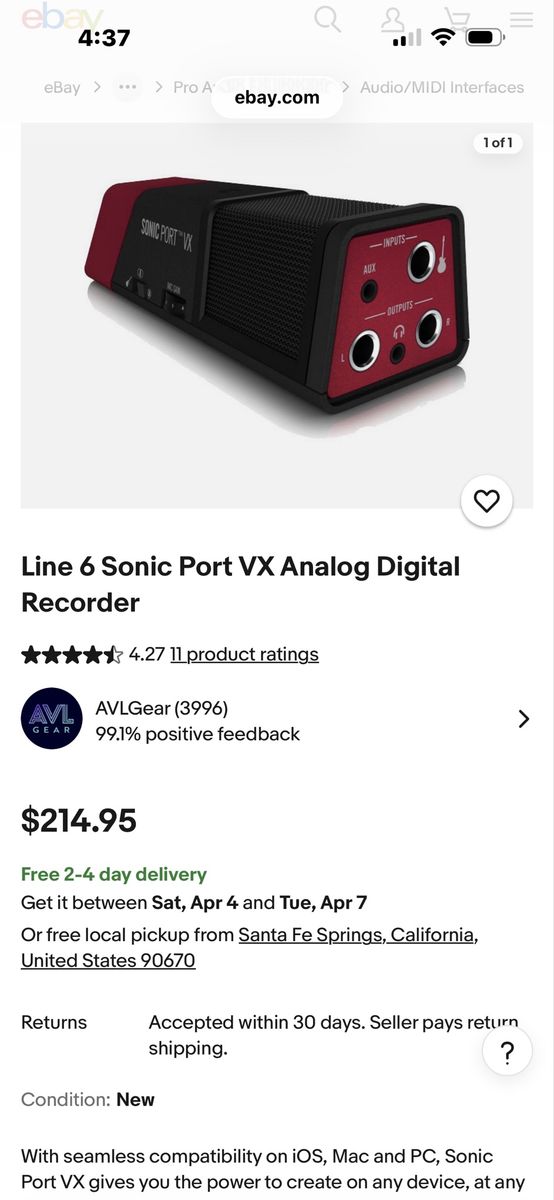 New line 6 sonic port box analog digital recorder! Box is in rough shape, but product is new! Excellent condition! Looks and works great! ! This exact unit is 214.95online right now as shown in photos! Don’t pay retail prices, call Dustin instead at 801-205-3404. I need it gone!