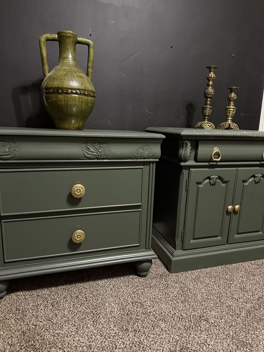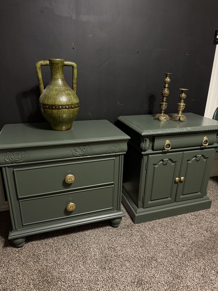 VenmoTwo large nightstands refinished in a dark green with gold hardware. Sold as a set or separately. $150 each or $250 for the set.