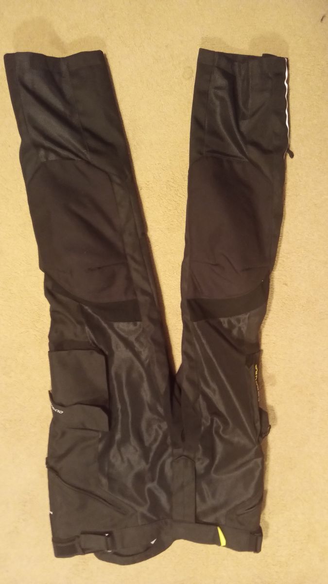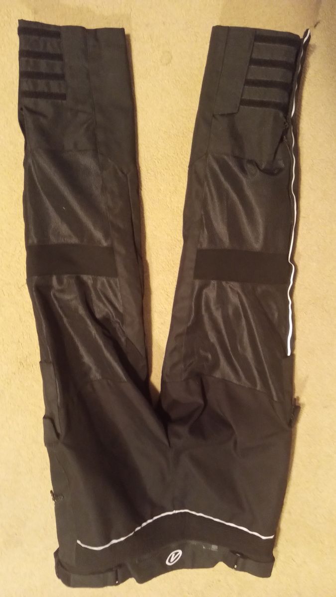 Used only a few times, never in dirt or rain. Just too big for my waist. Comes with thermal base layer and rain pant attachments.