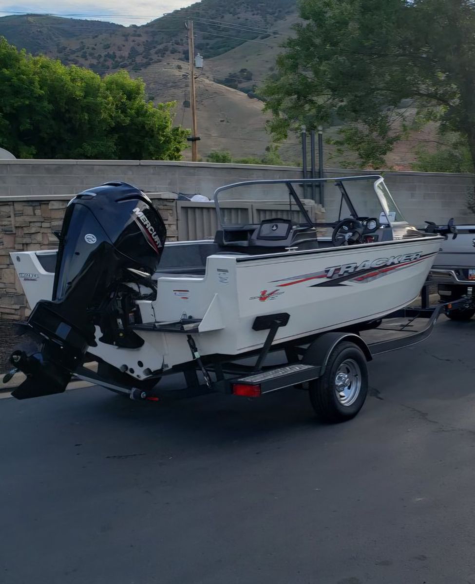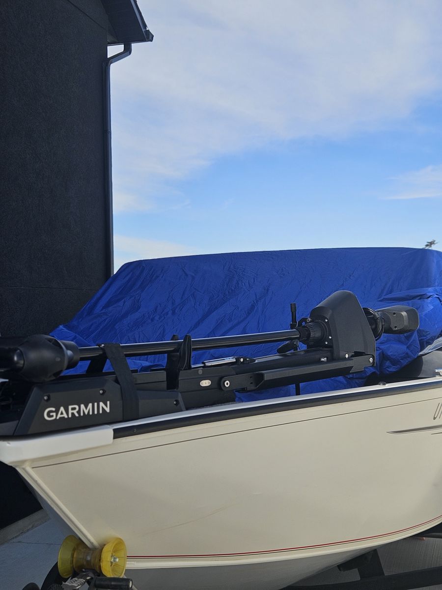 Key Features: 90 HP Mercury outboard with low hours, Garmin Force 24V trolling motor with GPS anchor lock, 24V lithium battery system for lightweight and long runtime, Lowrance fish finder, two manual downriggers, multiple rod holders, Bimini top for shade, Windshield travel cover for windshield protection while towing, Deep V hull handles chop with ease and stability. Two live wells (one rear, one front), tons of storage compartments. Lifejackets and some extras. Includes trailer.