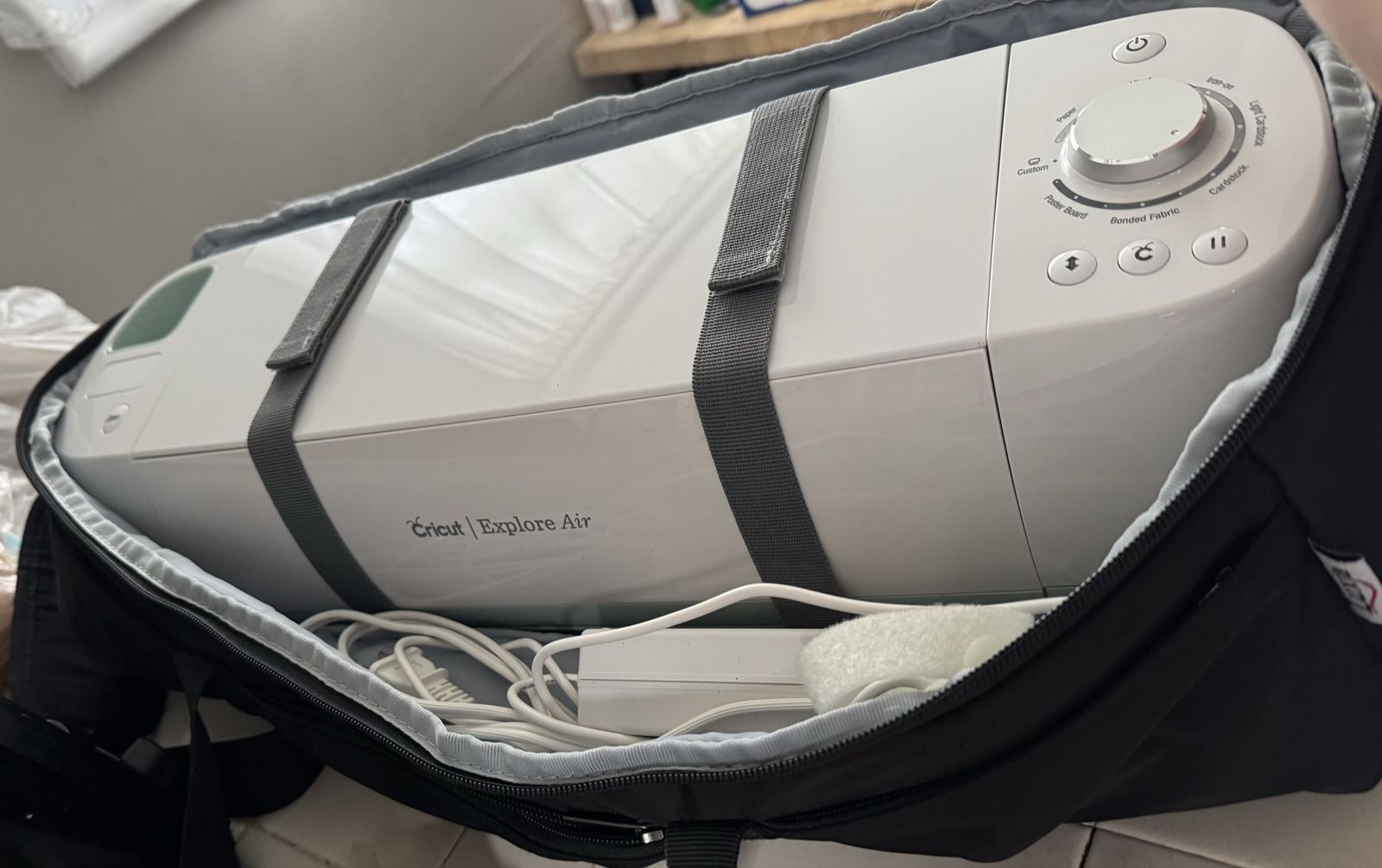 ApplePayCricut Explore Air with carrying case, Cricut EasyPress 2 (9x9), cords, and assorted tools/accessories. No cutting mats or vinyl included. Both work great!
