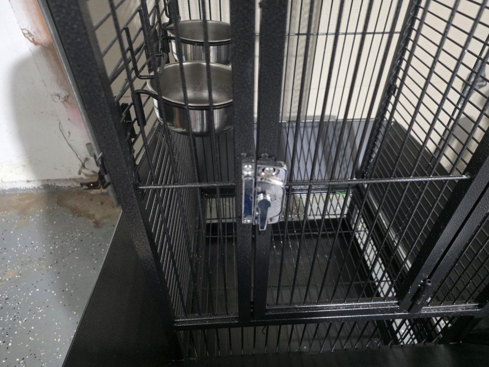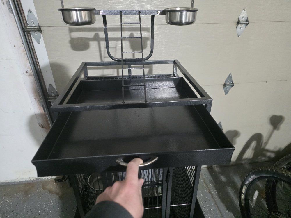 VenmoVery nice bird cage, has two removable trays for cleaning. 4 food / water dishes and is in excellent condition