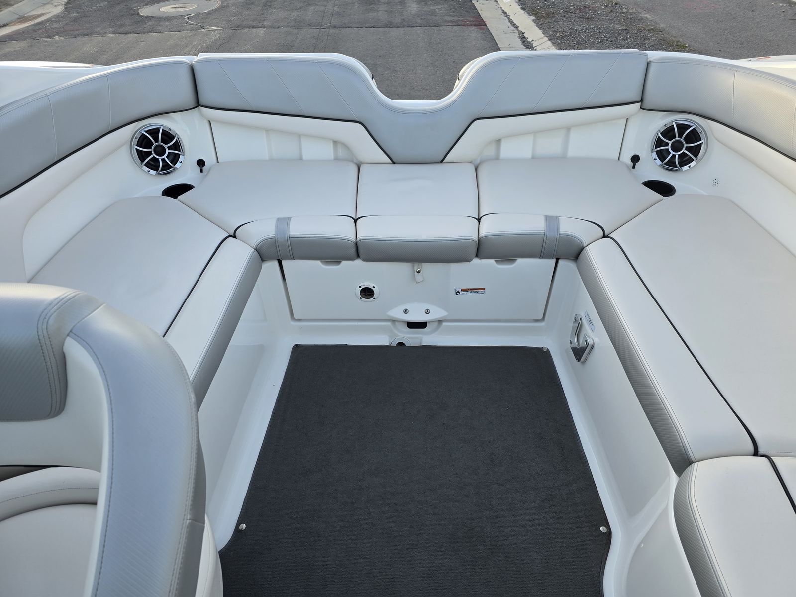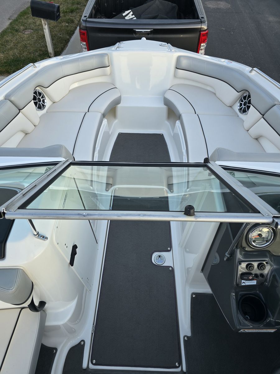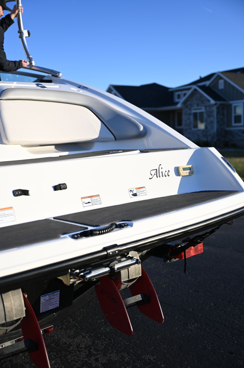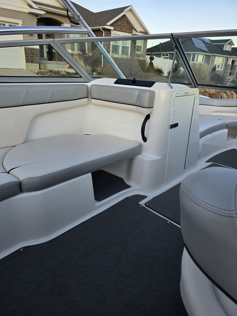 Dual jet engines, both just over 200 hours. Includes Premium Wet Sound system New boat cover Dual axle trailer with trailer brakes 2 previous owners. All owners have stored the boat in a shop or garage protected from the elements full time. Selling because we have 2 little kids and can't find time to use it. Minor damage to grey bimini fabric