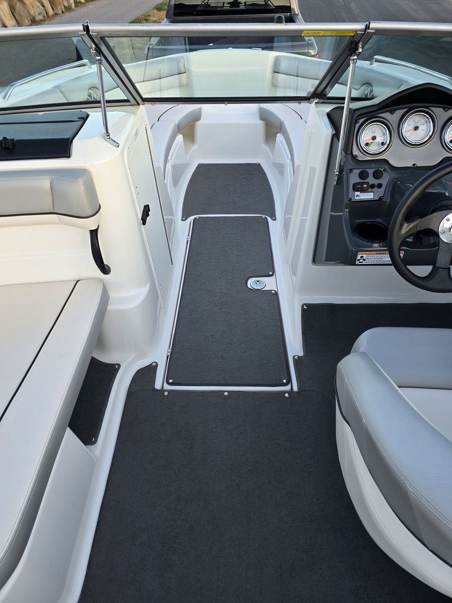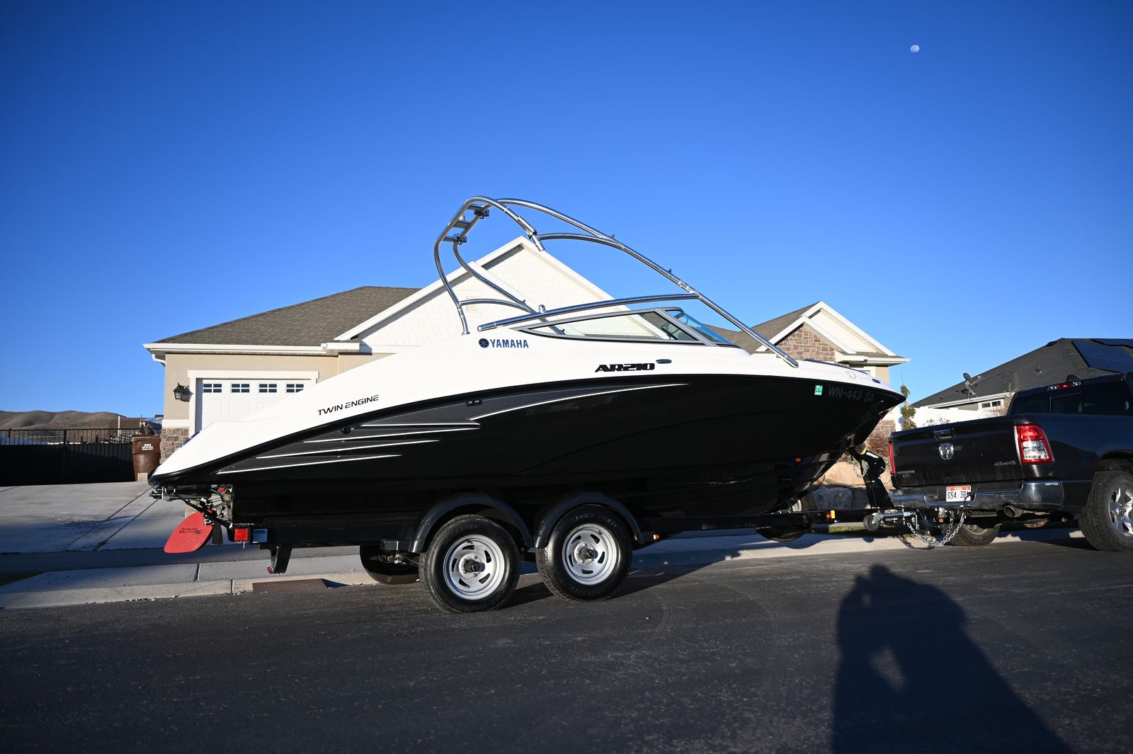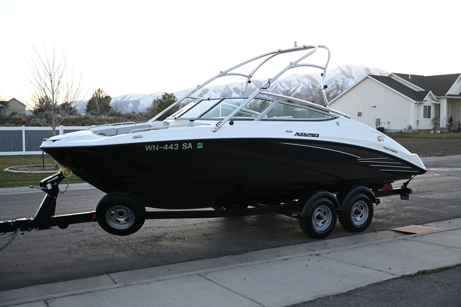 Dual jet engines, both just over 200 hours. Includes Premium Wet Sound system New boat cover Dual axle trailer with trailer brakes 2 previous owners. All owners have stored the boat in a shop or garage protected from the elements full time. Selling because we have 2 little kids and can't find time to use it. Minor damage to grey bimini fabric