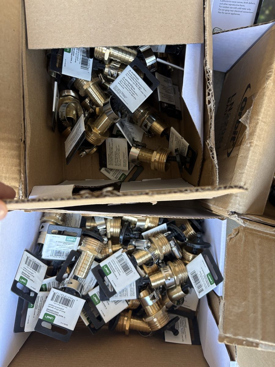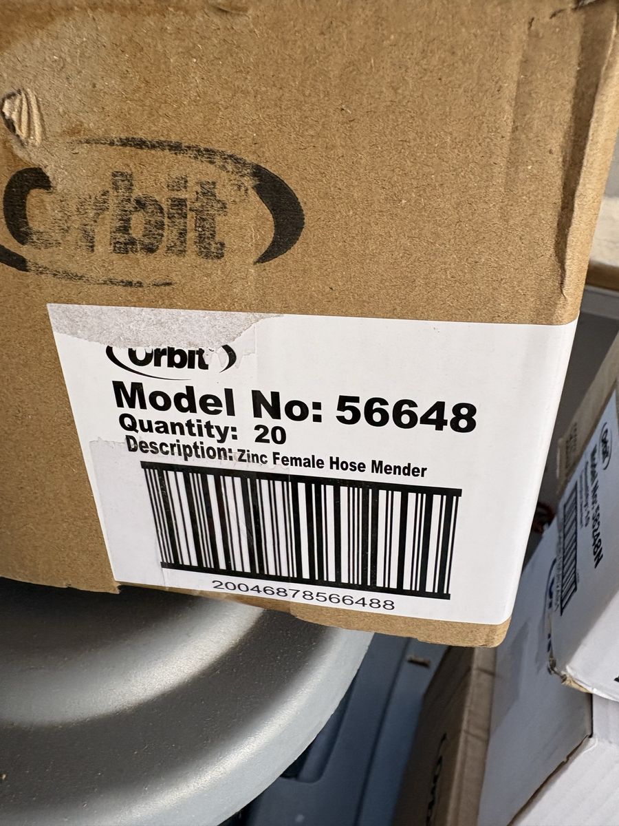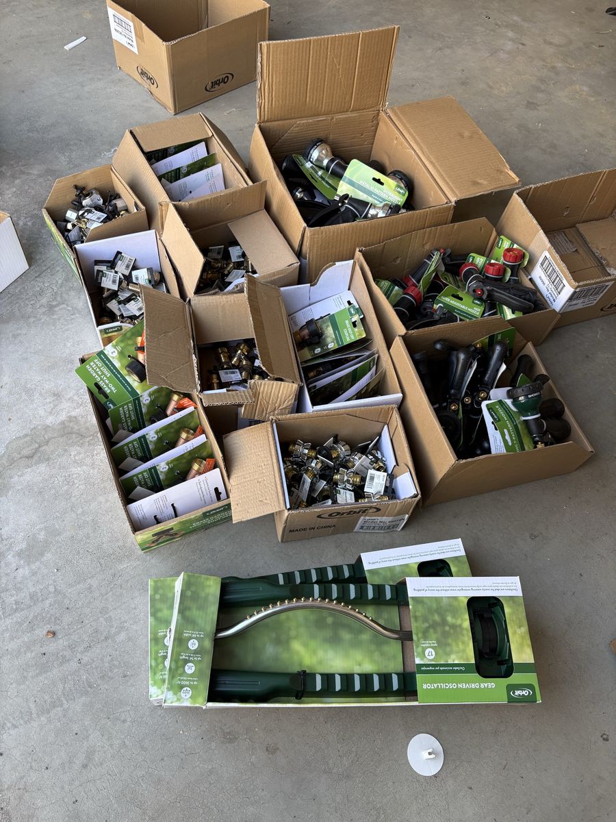 VenmoBoxes of new Orbitz, sprinkler and hose repair parts, spray nozzles, sprinklers, etc…