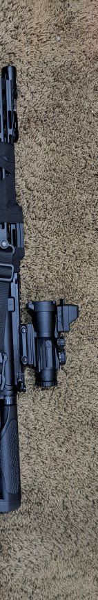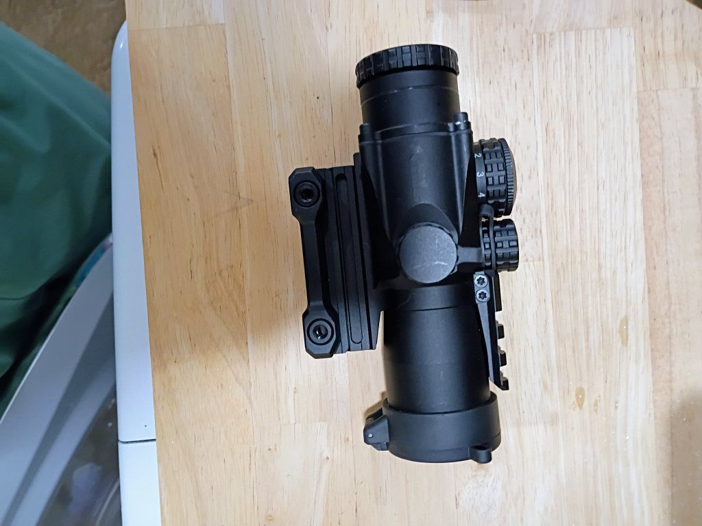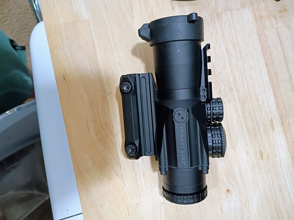 VenmoOptic works great. manufacture recommends 5.56, .308, and 7.62 for hash marks. I used it for 9mm and worked fine. has picatinny mount on top of the optic for piggy back sights