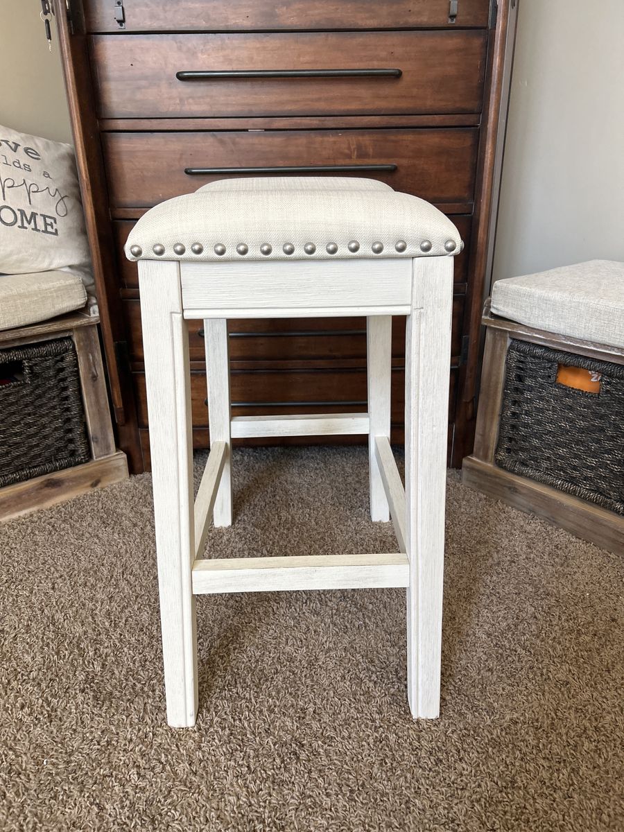 Maven Lane counter height stool “Adrien” White oak brushed finish Assembled for photos Seat top 19” x 13” 29” high 1 available