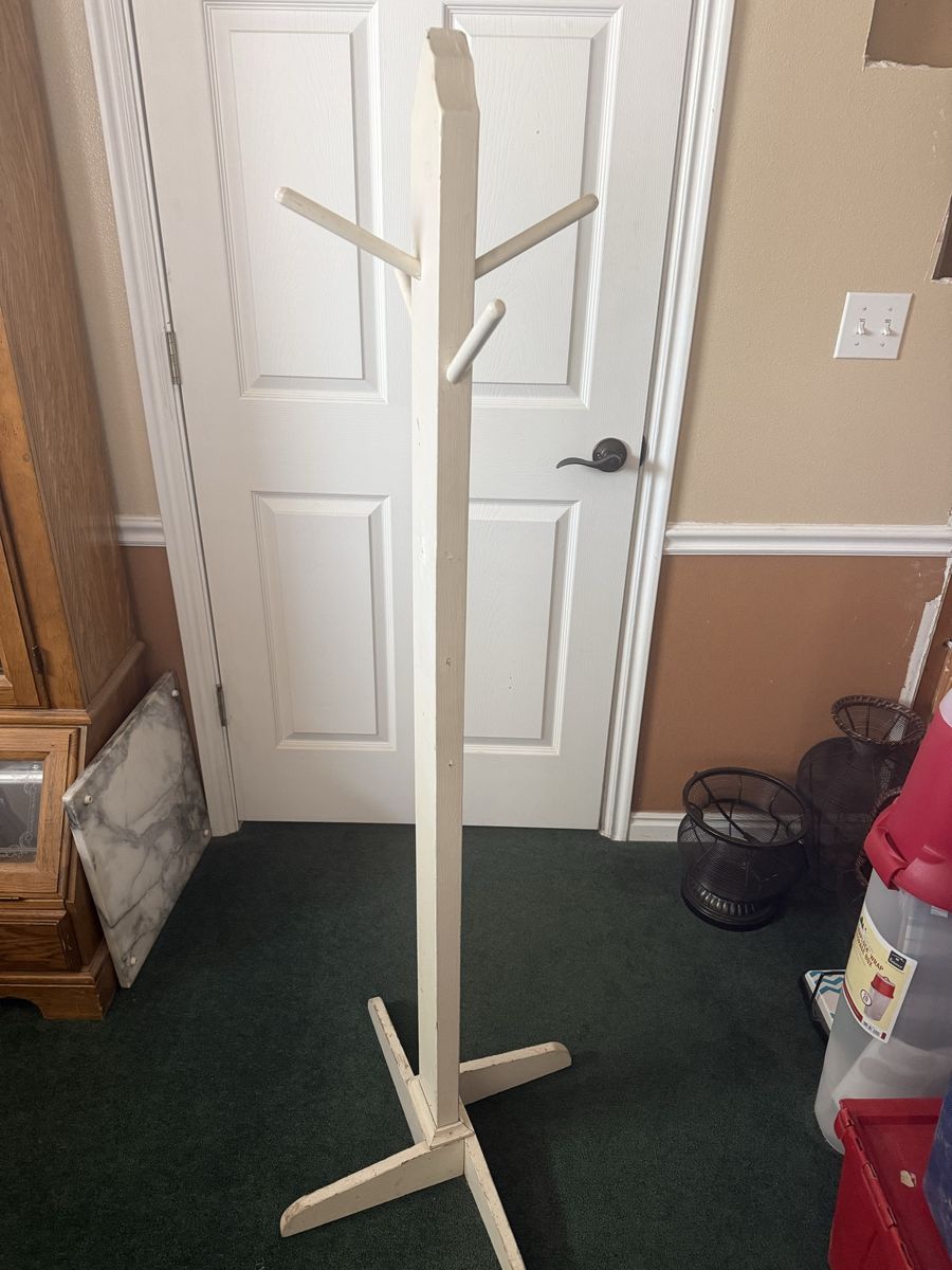 VenmoWhite wood coat rack good for kids room or play room or where ever you need coat storage.