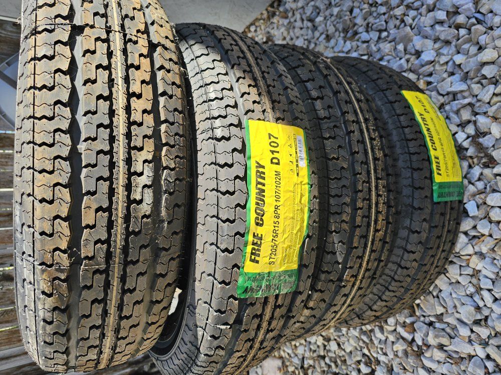 Brand new Free Country trailer tires. SR205/75R15 8PR. $120 for all four tires.