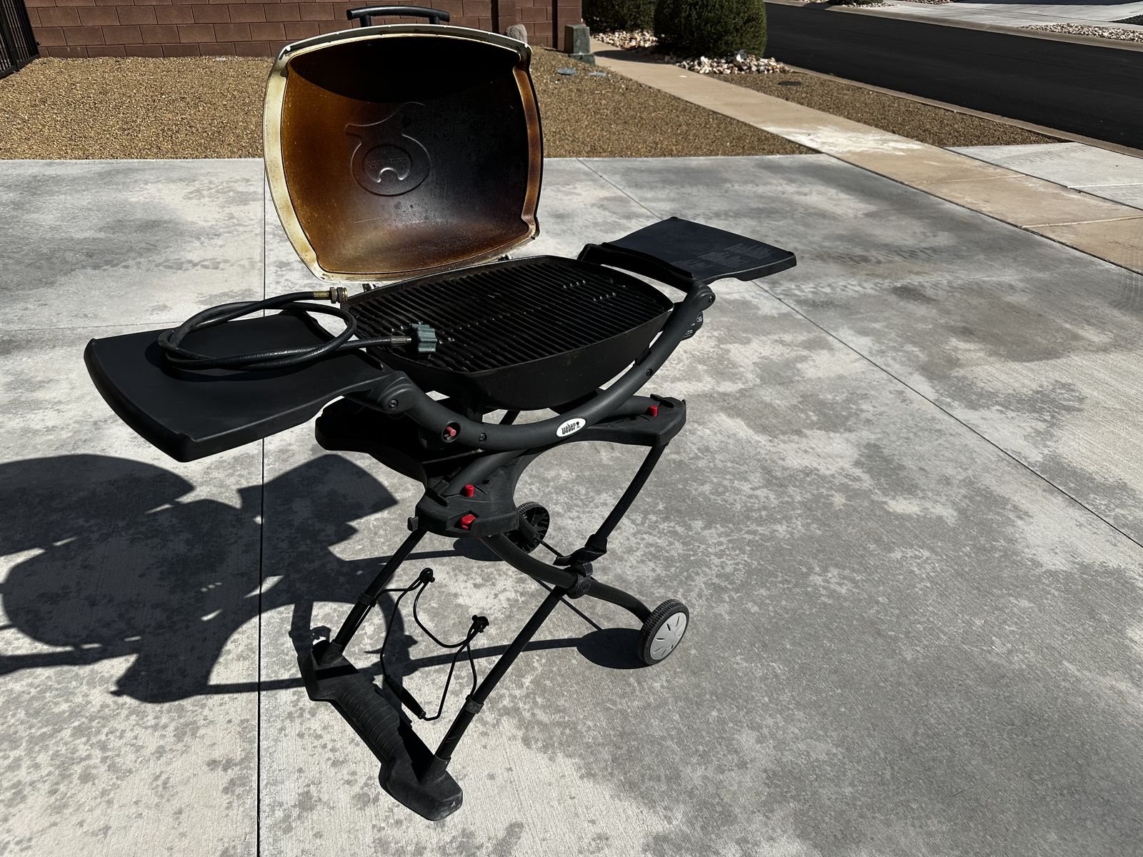 VenmoFolding stand for travel. 2 folding side work tables. Includes universal hose with adapter. Pull out grease pan.