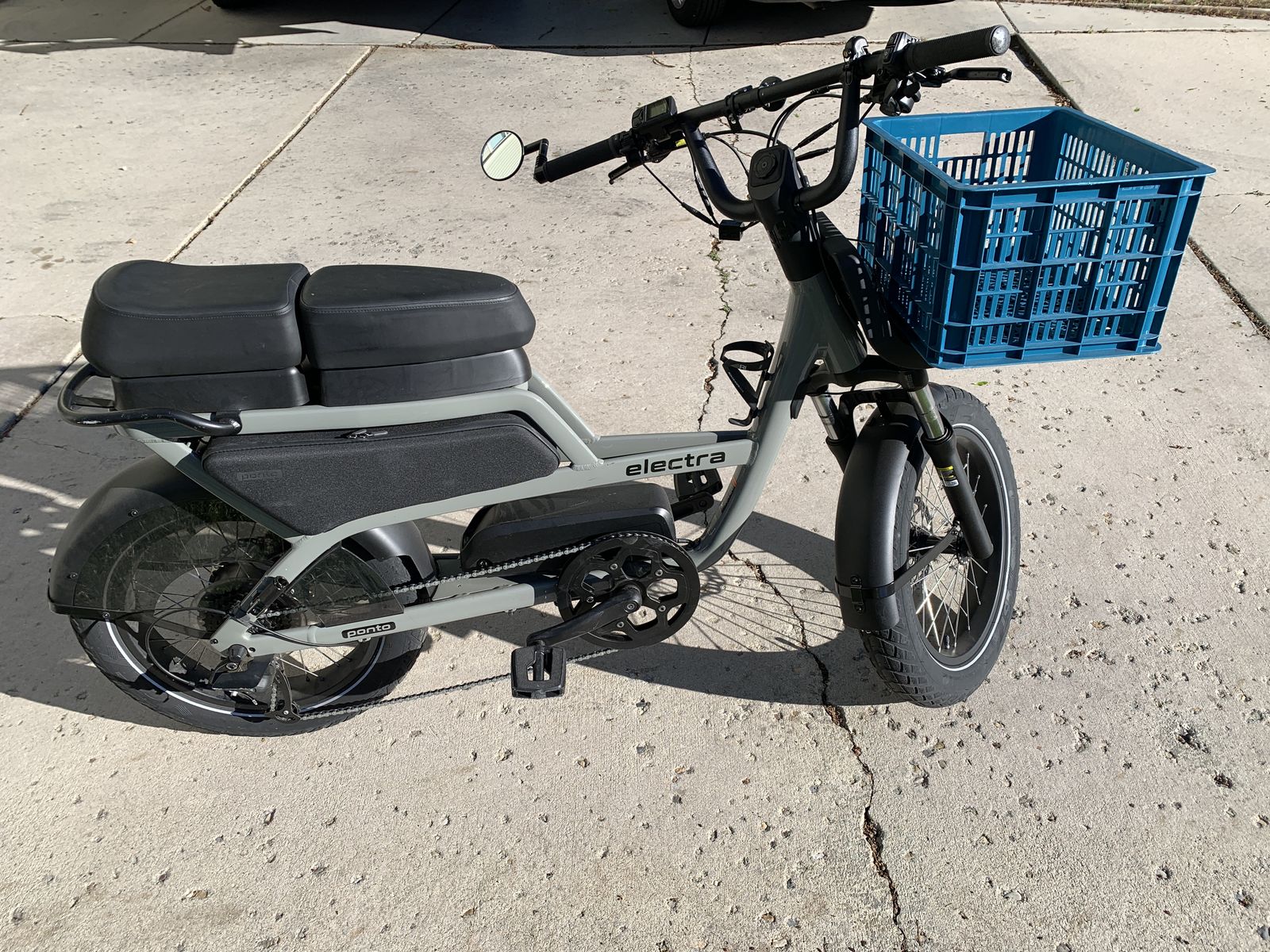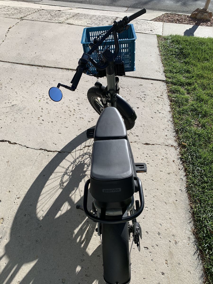 Trek/Electra Ponto Go! Ebike. Seats 2. Includes extra accessories; Frame bag, mirror, "Milk Crate" basket, water bottle cage, and seat booster. Always kept in garage. Has a 750W motor, hydraulic disc brakes, rear passenger footpegs, turn signals & brake light. For pickup in Cottonwood Heights. Cash only please.