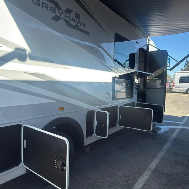 The 2026 Jayco Greyhawk XL 33F is a luxurious Class C motorhome designed for comfort and performance. Featuring a spacious layout, it boasts a full kitchen, large living area, and a master bedroom with a queen-sized bed. Its exterior includes a sleek, aerodynamic design and ample storage space, while the RV is equipped with advanced safety features and a powerful engine for smooth driving. The 33F model also offers a generous slide-out, enhancing interior space, and modern amenities like a flat-screen TV, high-quality appliances, and a well-appointed bathroom. Ideal for family trips or extended travels, the Greyhawk XL 33F combines convenience, durability, and style.