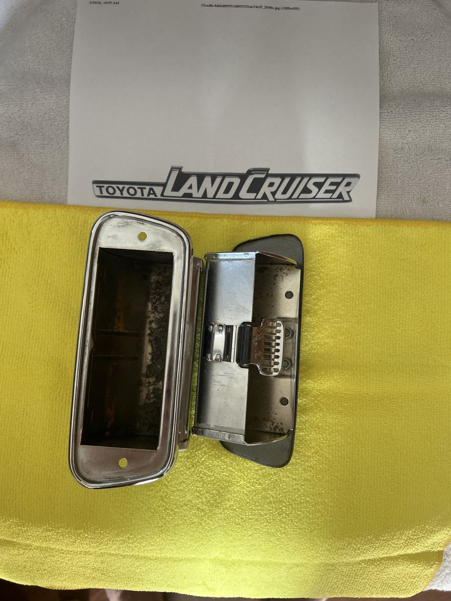 PayPalFj40 landcruiser 40 series1965-1979 dash jewelry (ashtray assembly) nice original paint and chrome. Available for easy pickup in Salt lake or I will ship it to you.