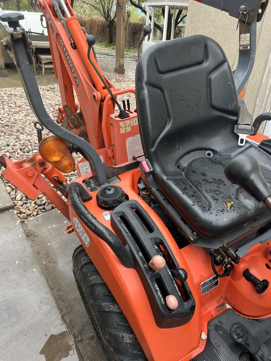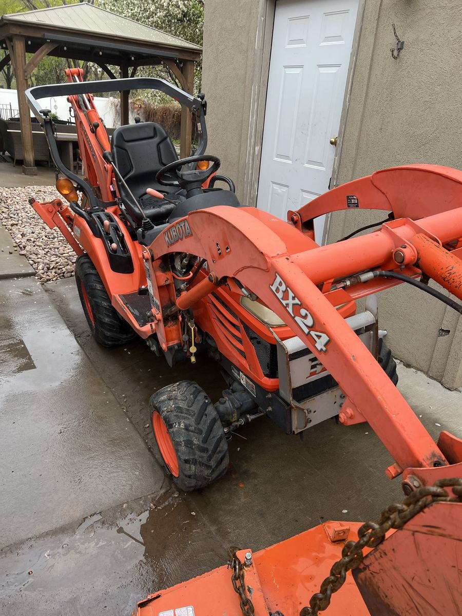 This is the Kubota BX 24 tractor with backhoe and loader. Diesel. 24 hp. 3 cylinder. Quick release backhoe. Standard 3 point hitch and PTO. Looks and runs great $16.400