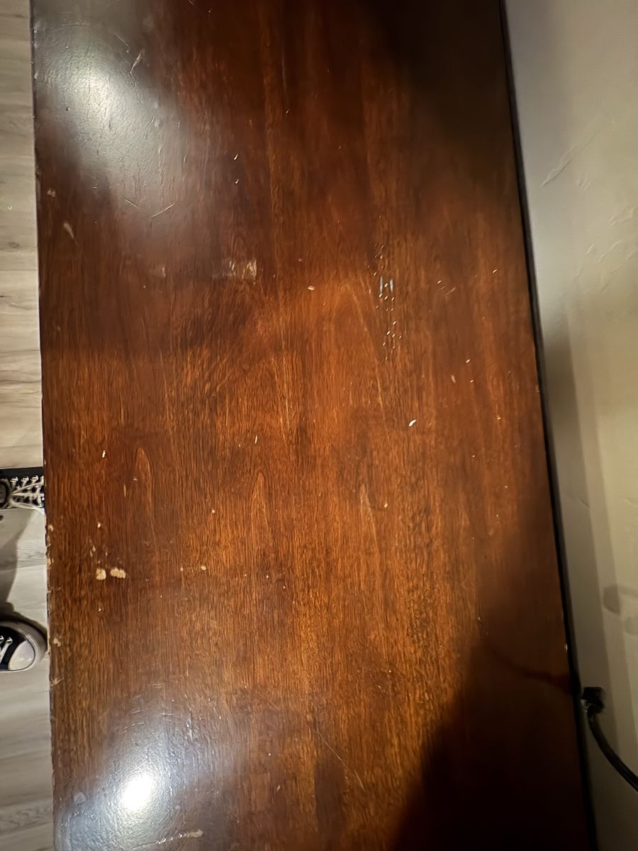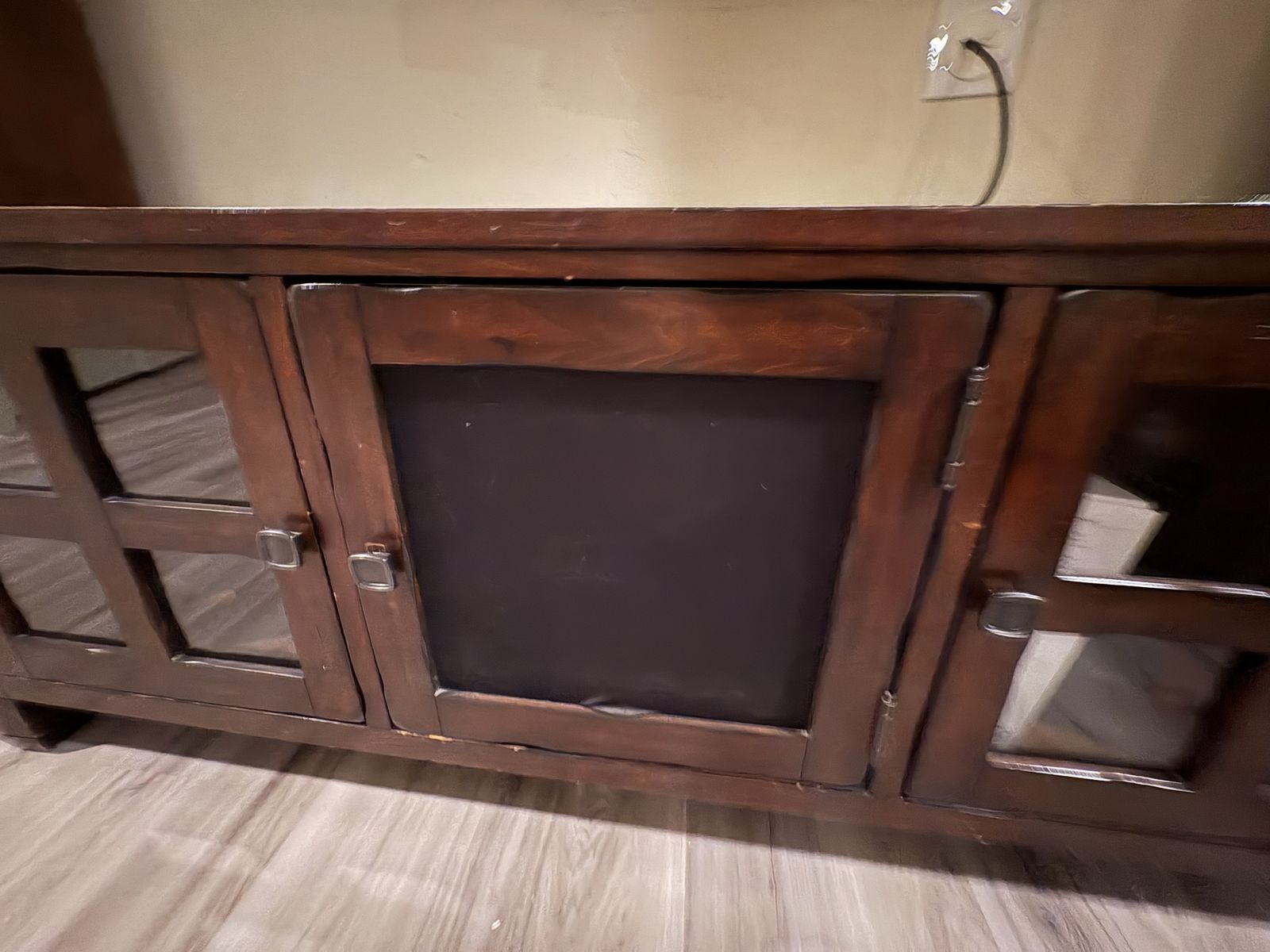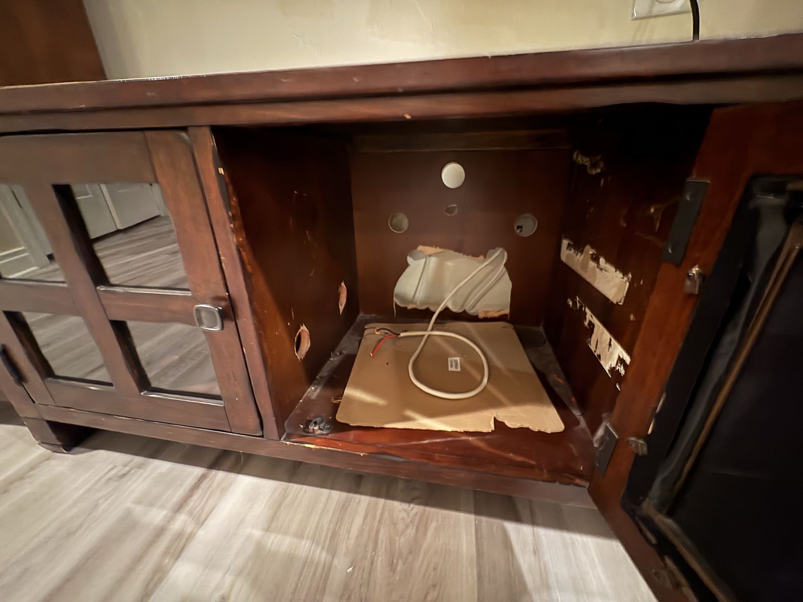 Real wood entertainment center. Lights on the shelves areas some damage.
