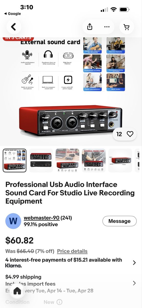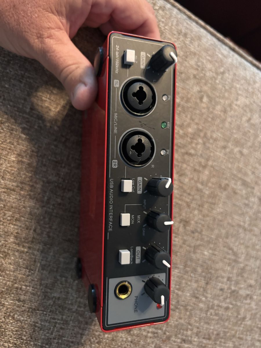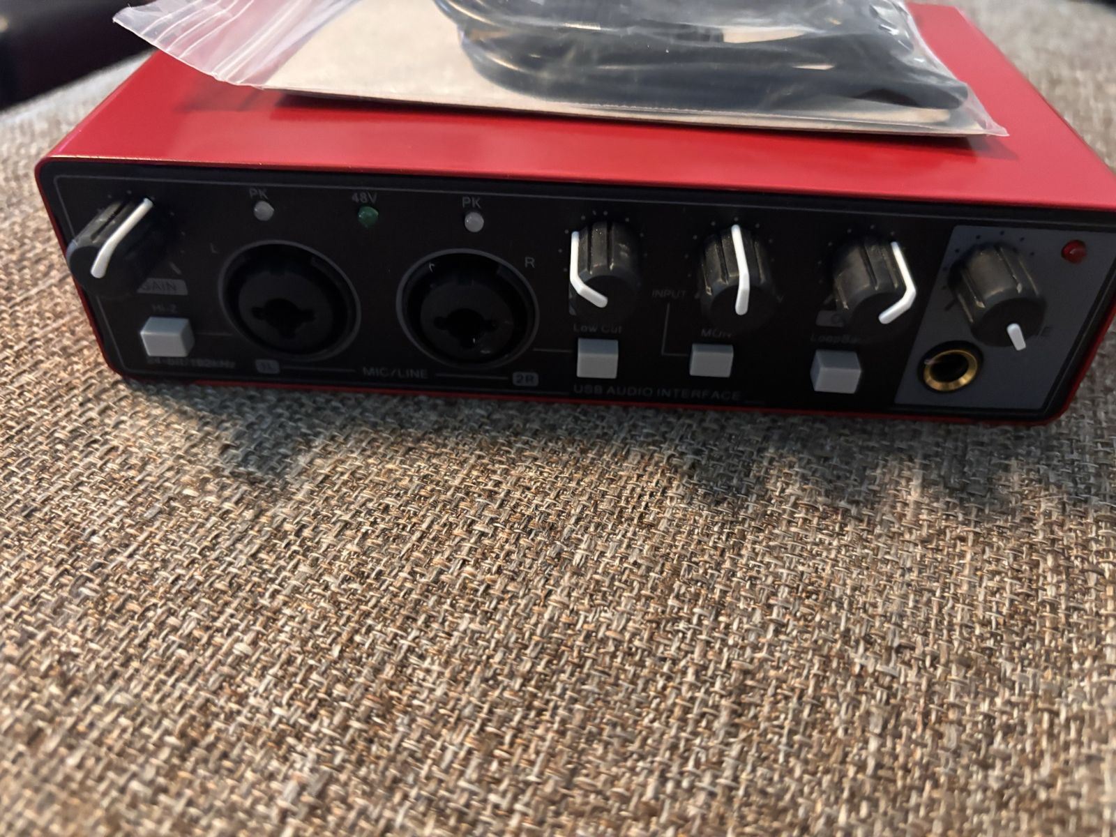 Brand new usb professional audio interface for recording! New with no box! Comes just as shown with cord only! Looks and works great! This exact interface is 60.82 used on ebay now as shown in photos! Don’t pay retail prices, call Dustin now instead at 801-205-3403, I need it gone!