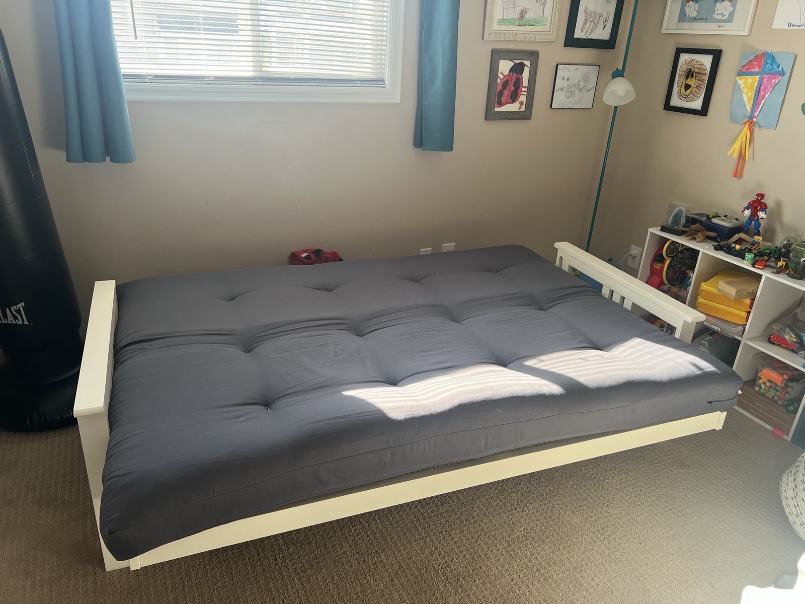 VenmoFull size futon, a few years old. From Wayfair, originally priced at $600+. Mattress is 6 feet by 4 1/2 feet when it’s lying flat. Frame is 79” long, arm rest to arm rest. Great futon, but our house is simply too small and we have no room for it. It’s been slept on very minimally over the last few years. For sitting, I give it an “A+”. For sleeping, I give it a “B+”. Pickup in Millcreek. Cash or Venmo.
