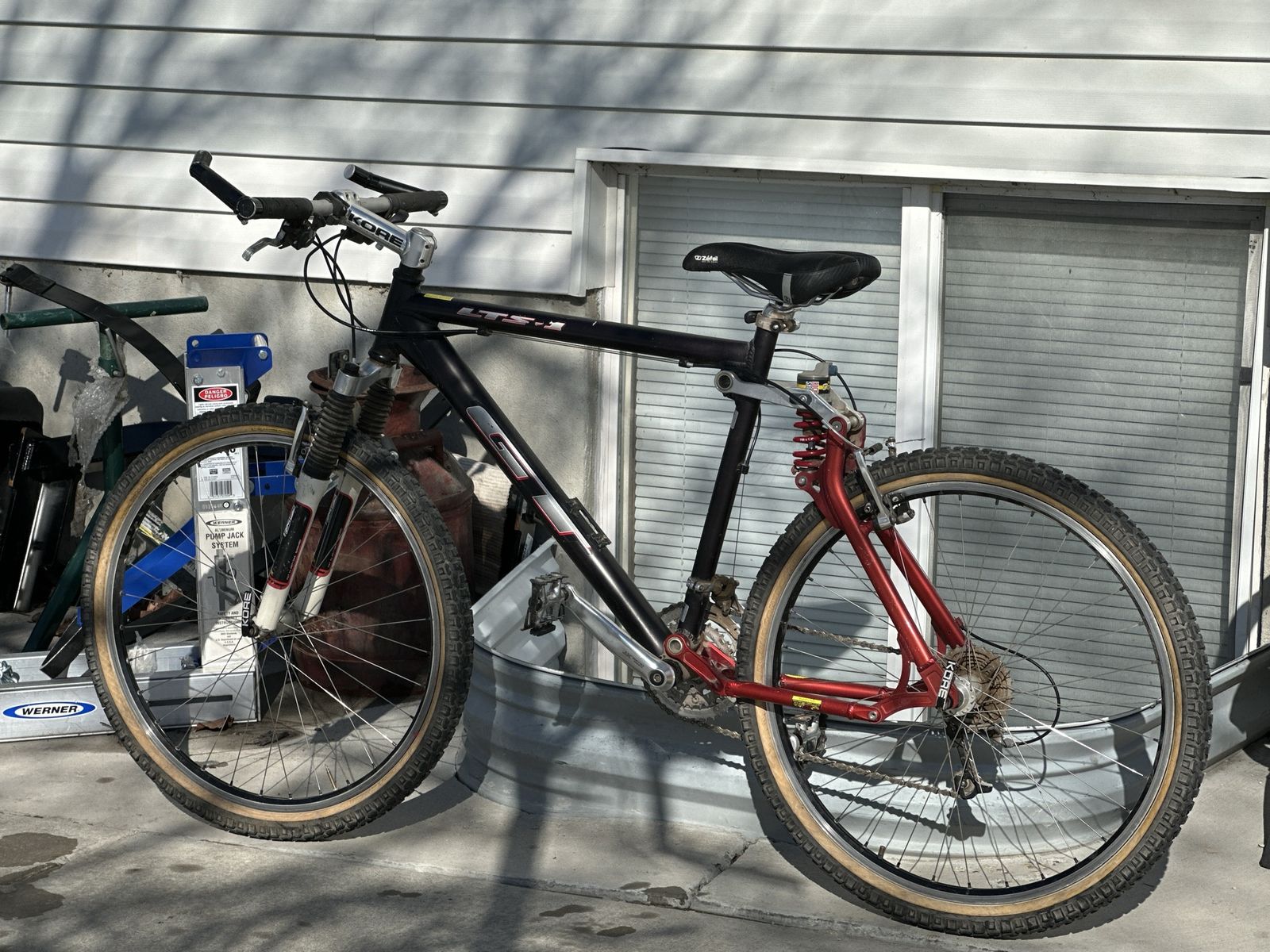 This Bike is still in good condition still in good shape, both tires hold air, tire treads are good, pedals are good , chain is good ,seat is good, aluminum frame is still solid and has no cracks, brakes work great and shifters work great 8x3 , 24 speed front suspension works great & rear shock works great rides smooth
