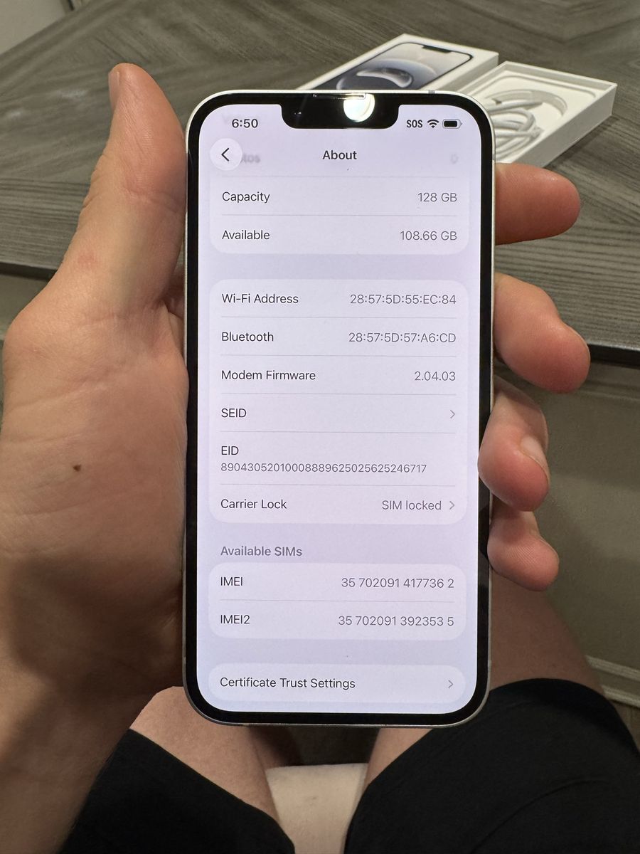 VenmoSelling my iPhone 16e in absolutely perfect condition. This phone was manufactured in August 2025 and first used in January 2026 — it’s essentially brand new. Battery health is at 100% with only 50 charge cycles, and it comes with the original box and Apple USB-C cable.