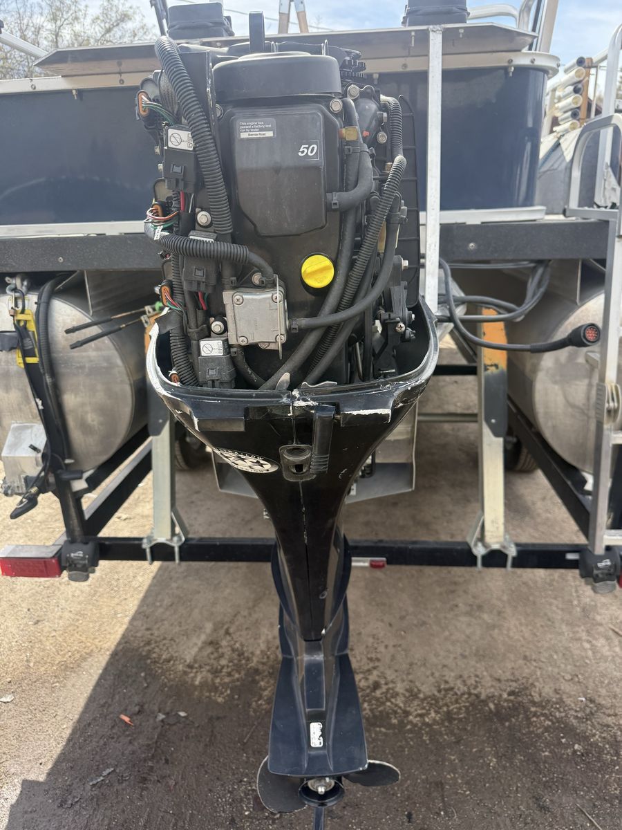Good running out board! Been a super reliable and great motor! Just upgraded to something a little more powerful. I have change out already and Currently off boat but I have videos of it running. Foot oil Changed every year. Just had serviced. Not sure of the hours but very low. Have throttle control if needed. Has title and I have it in hand.