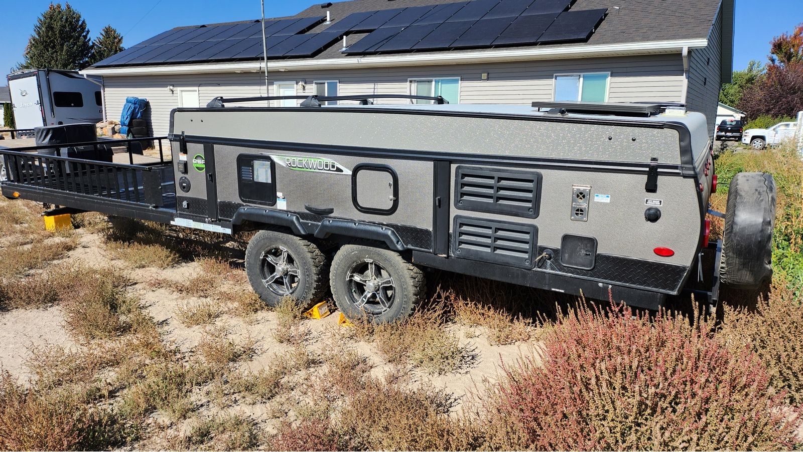 VenmoThis 2021 Rockwood 282TESP is a wonderful pop-up tent trailer with a large front deck, large enough to hold a 2 four wheelers or a UTV. It is offroad ready with an automatic lift and solar panels. We purchased it from Parris RV in Murray 2021.
