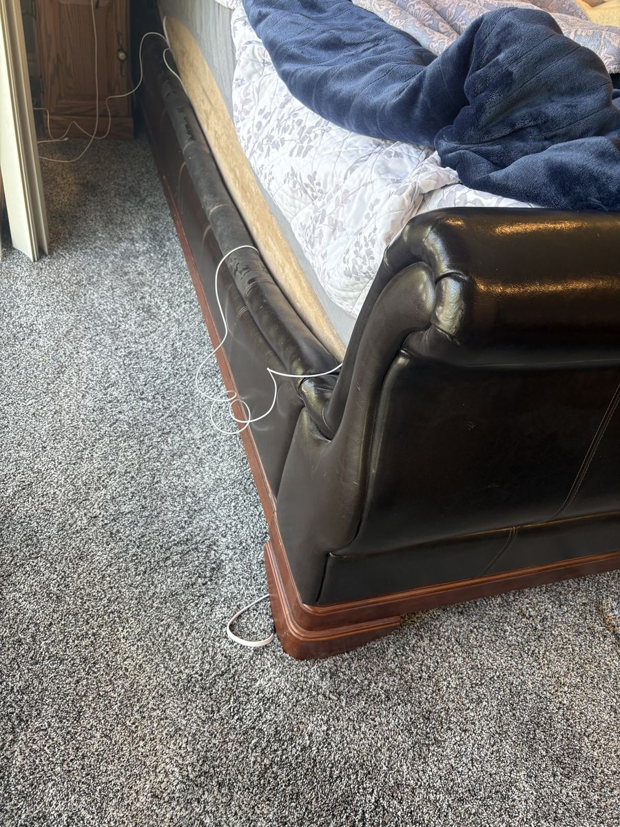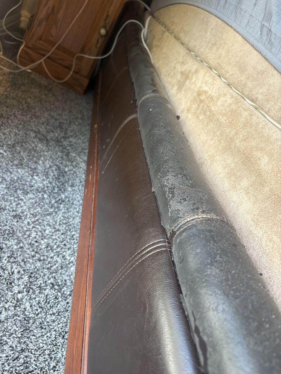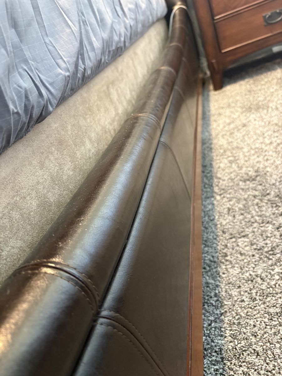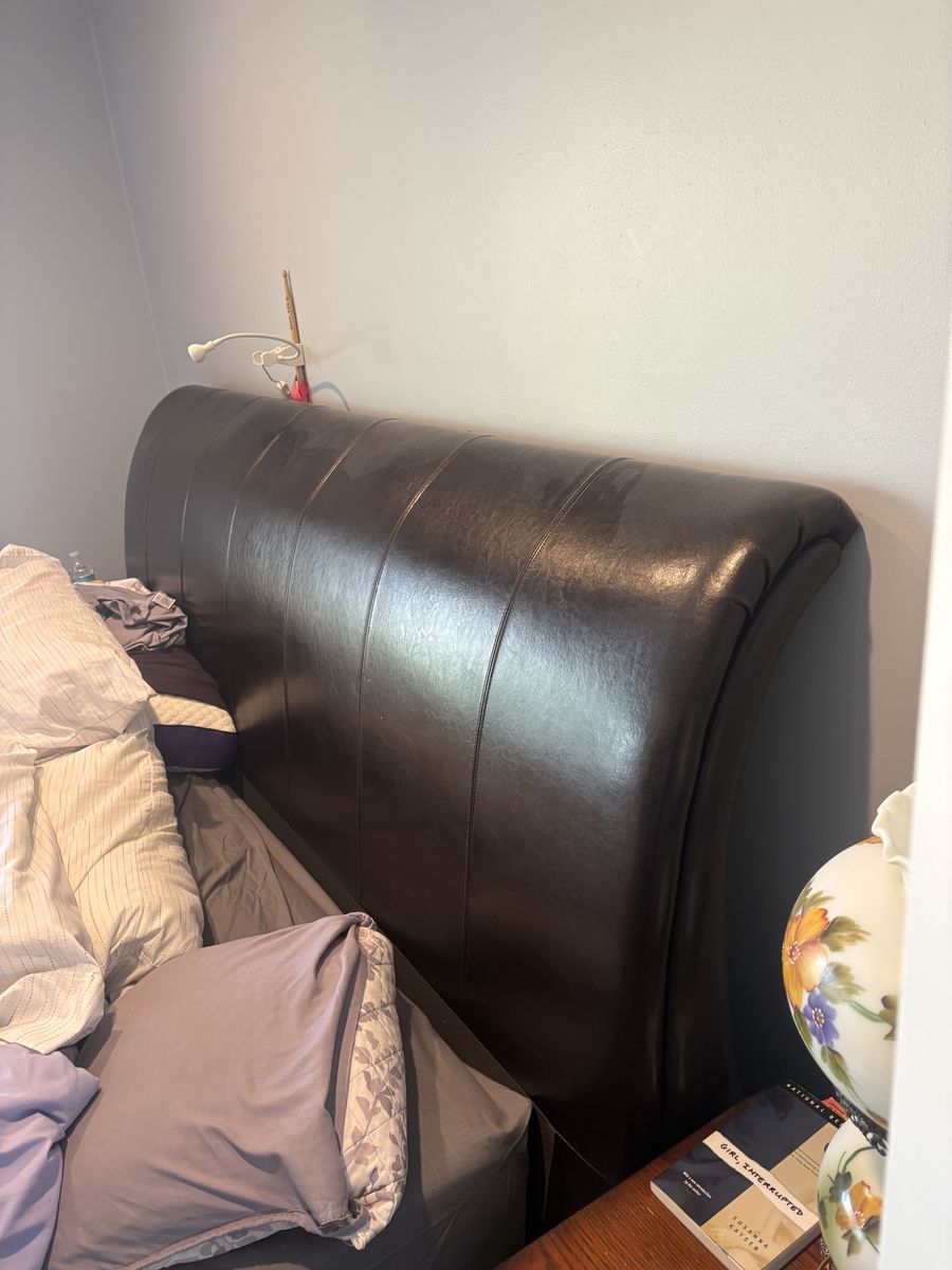 Used and big! Great shape bed frame with headboard. No tears in headboard.