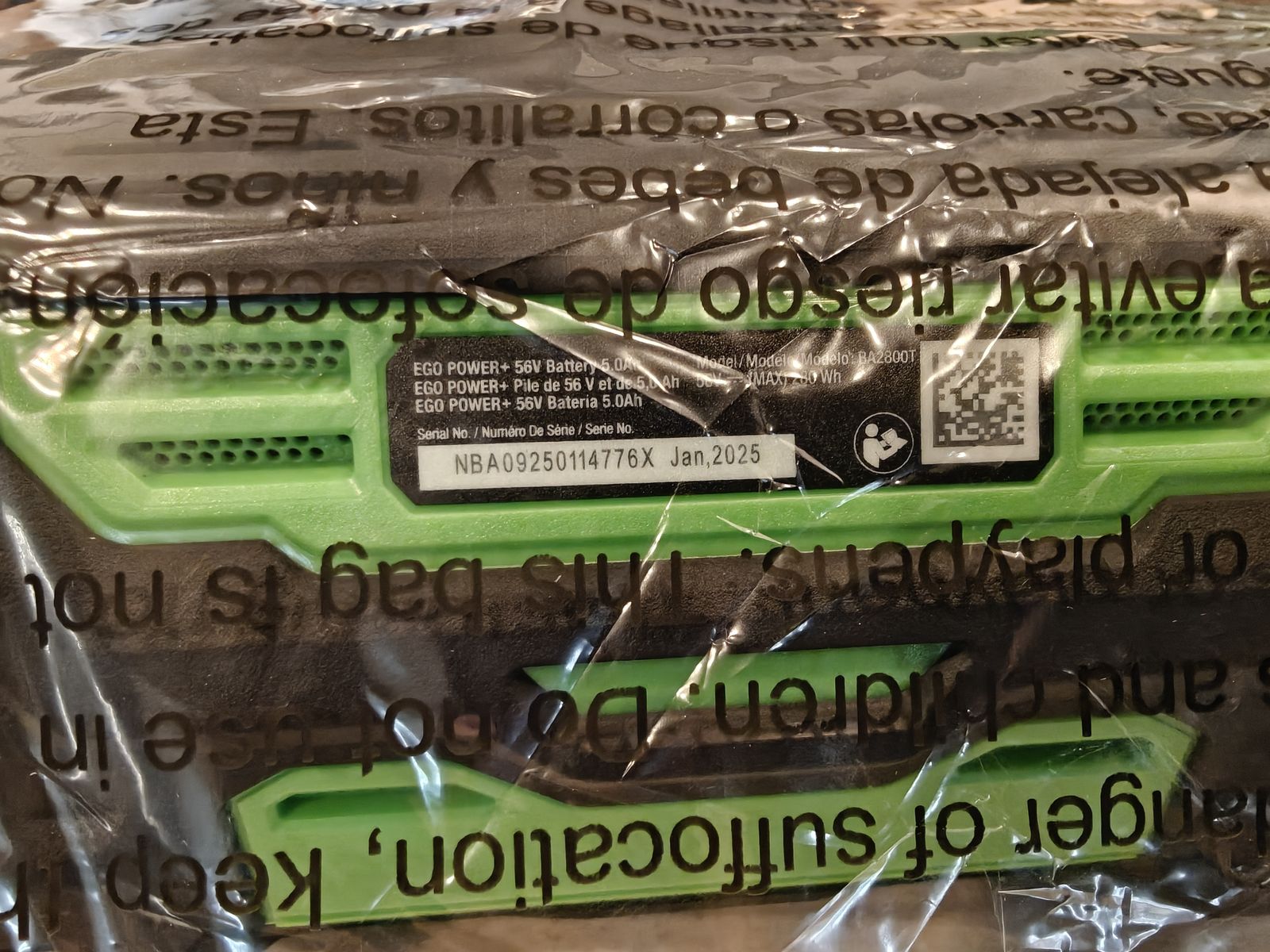 VenmoHi, I'm selling a genuine Ego 5.0 AH Battery + 210 Watt Charger - both of which are brand new! The battery has a manufacture date of Jan, 2025.