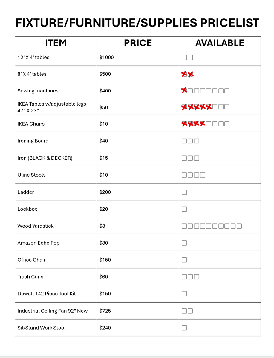 We are closing our store and trying to sell everything we can. Some things are available now, lots need to be picked up after April 25th. Industrial fans, huge packing tables, office chairs, gondola shelving, etc. See the full list with prices in the photos.