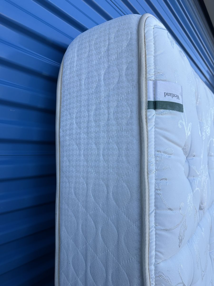 It is comfortable to sleep on. Medium-firm. The mattress has the perfect balance of support and cushion. We just don’t need it anymore. It just needs a new home. It is smoke-free. It is a must-see. Please note that you will need a truck, trailer, or large SUV to transport the item home. Sorry, the bed will not fit in or on a car, van, or small SUV. Venmo or cash. $75.