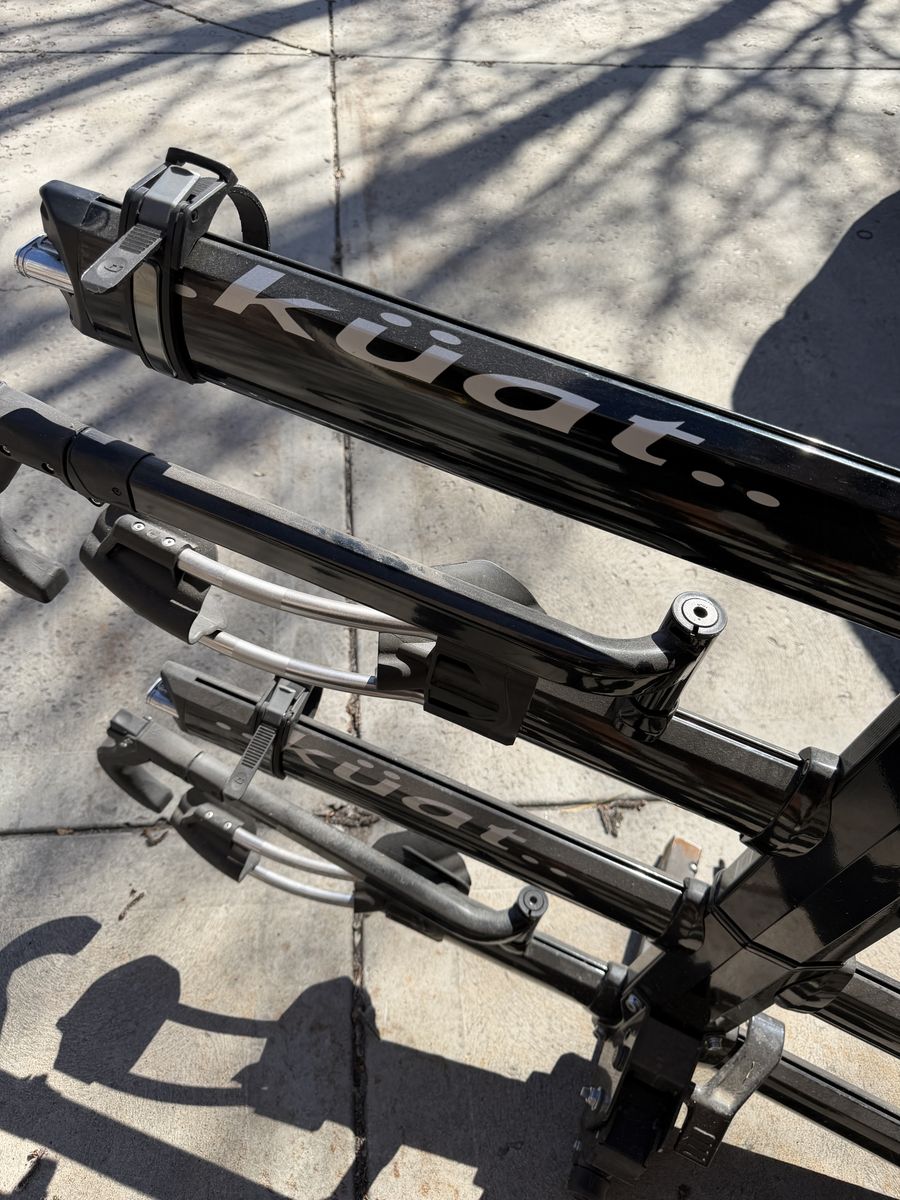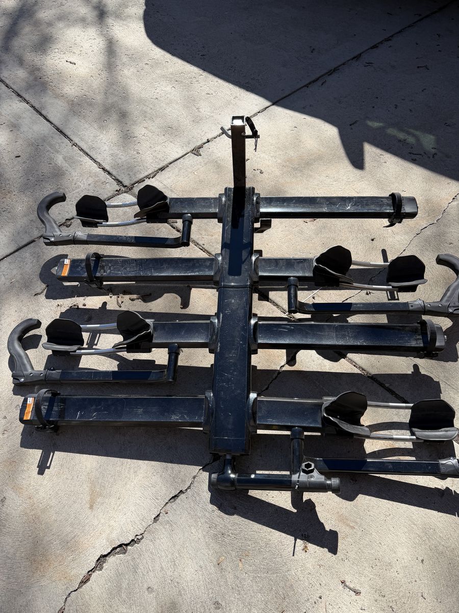 This is a 4 bike rack that attaches with a standard hitch. We used it for our 4 heavy Pedego bikes and it worked perfectly. Don't need 4 bikes any more... Rack is in good condition with minor wear. Sells new for $1,400