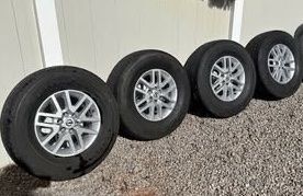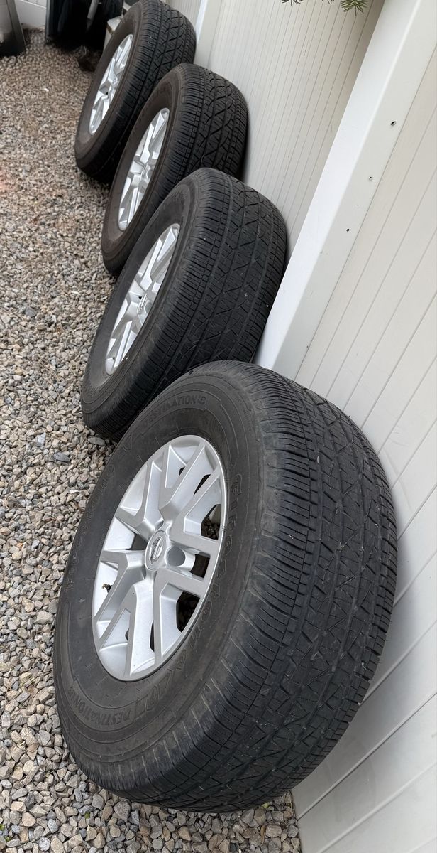 ZelleSize: 265/70/r16 This came off of our Nissan Frontier after we put new rims and tires on it. This set is in great condition and has plenty of life left in them. They all hold air and are damage-free.