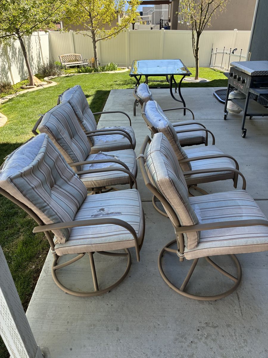 Venmosturdy frames in great condition. Needs new cushions though. All 6 chairs swivel and rock. Pick up only.