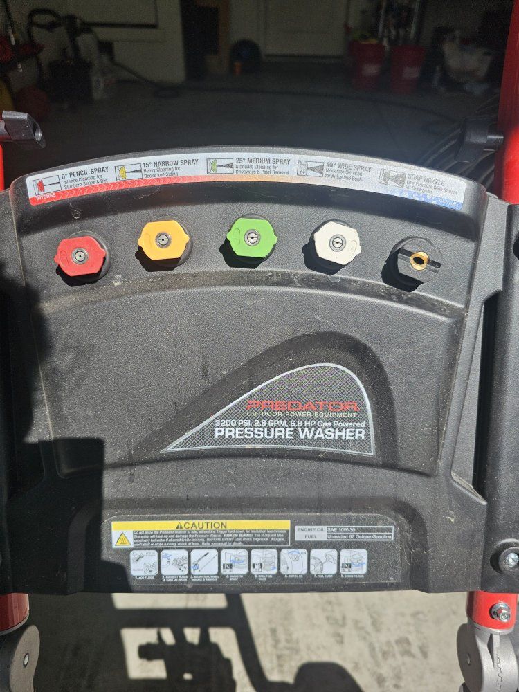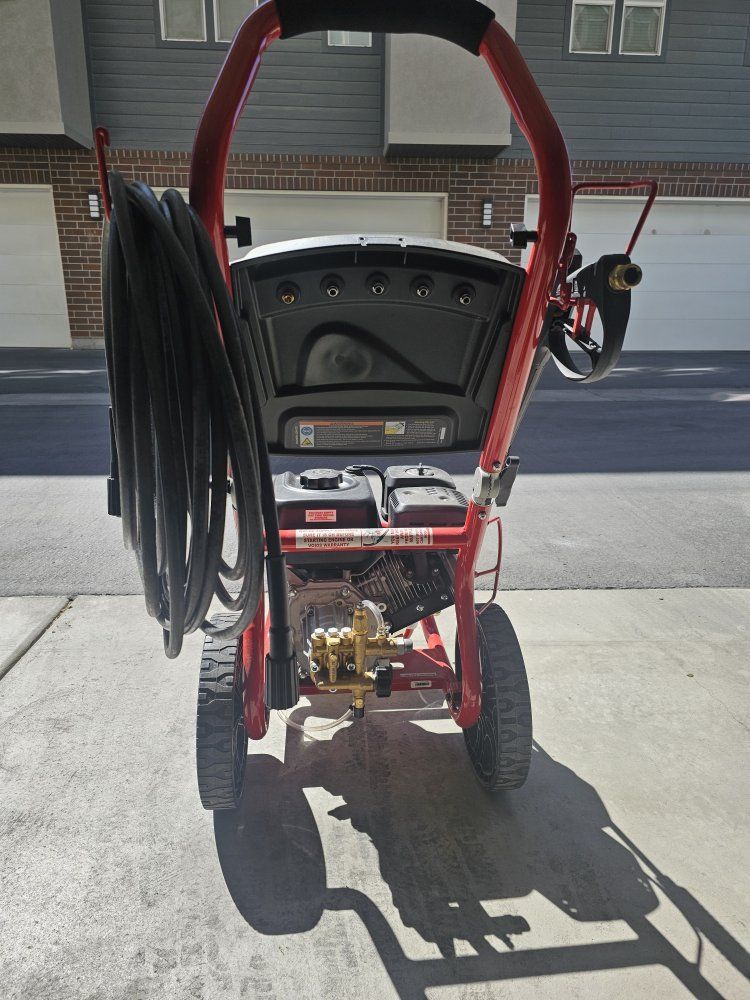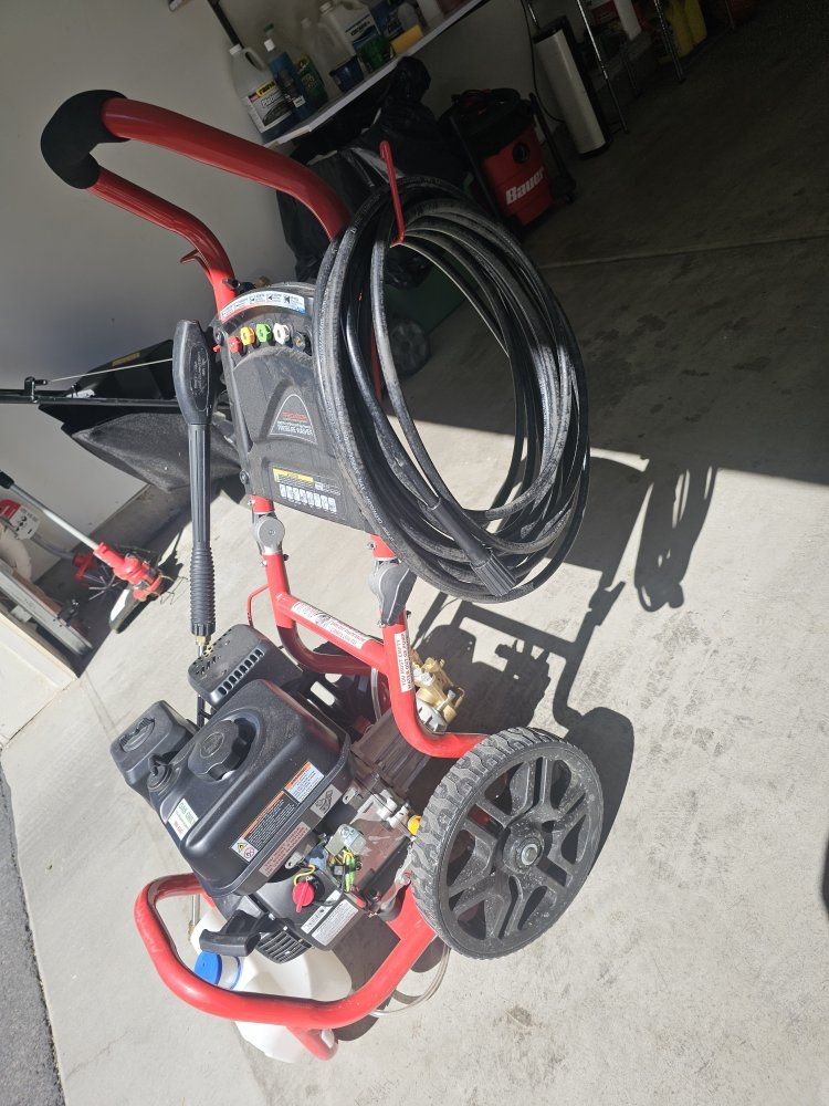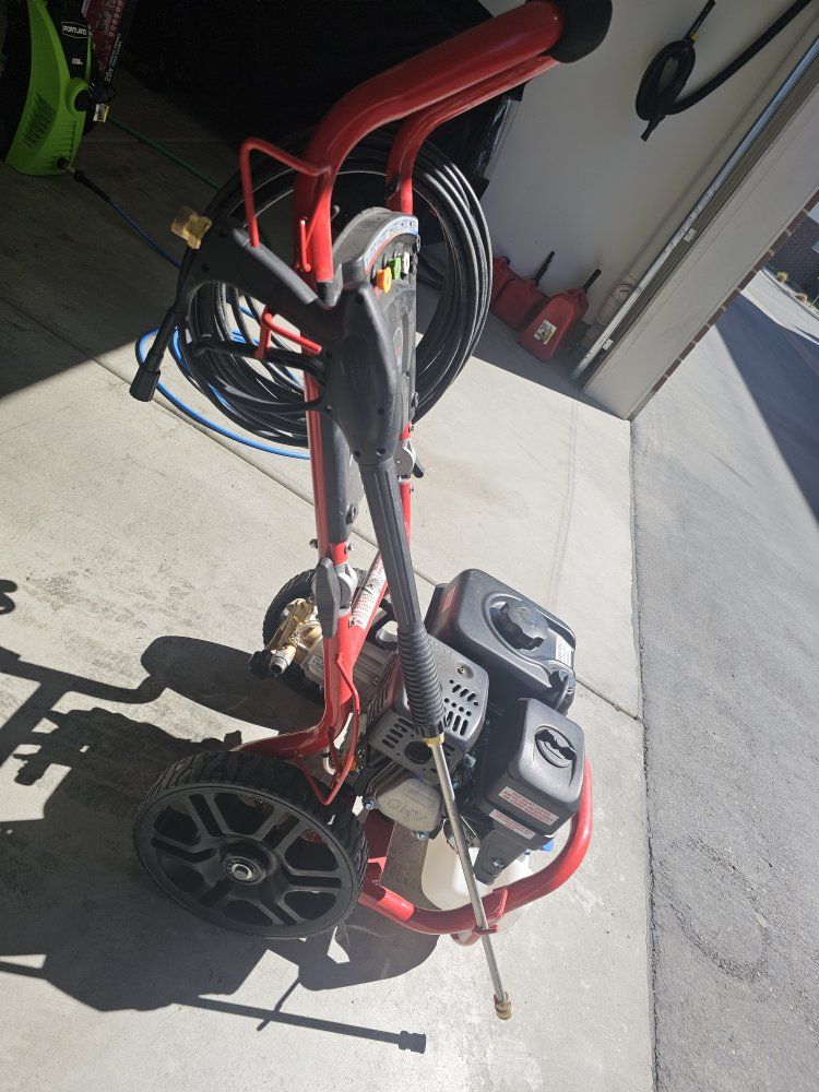 Zellelittle over a year old, crazy powerful, and runs perfectly. I got it to clean vehicles and the driveway, but recently moved, no longer have a driveway, and its more power than I need for my motorcycles. the oil is pretty new, changed in August, and i upgraded the hose to a 50 foot, but will include the original 25 foot as well. I can deliver if you don't have a vehicle to haul it with