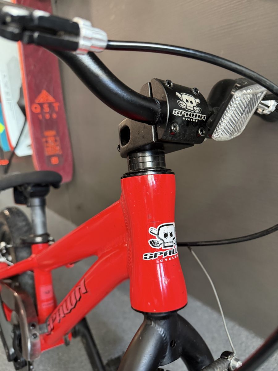 Premium kids bike in great condition. This is a high-end Spawn Yoji 14”—one of the best first pedal bikes you can buy. Perfect for getting kids confidently riding on both pavement and dirt.