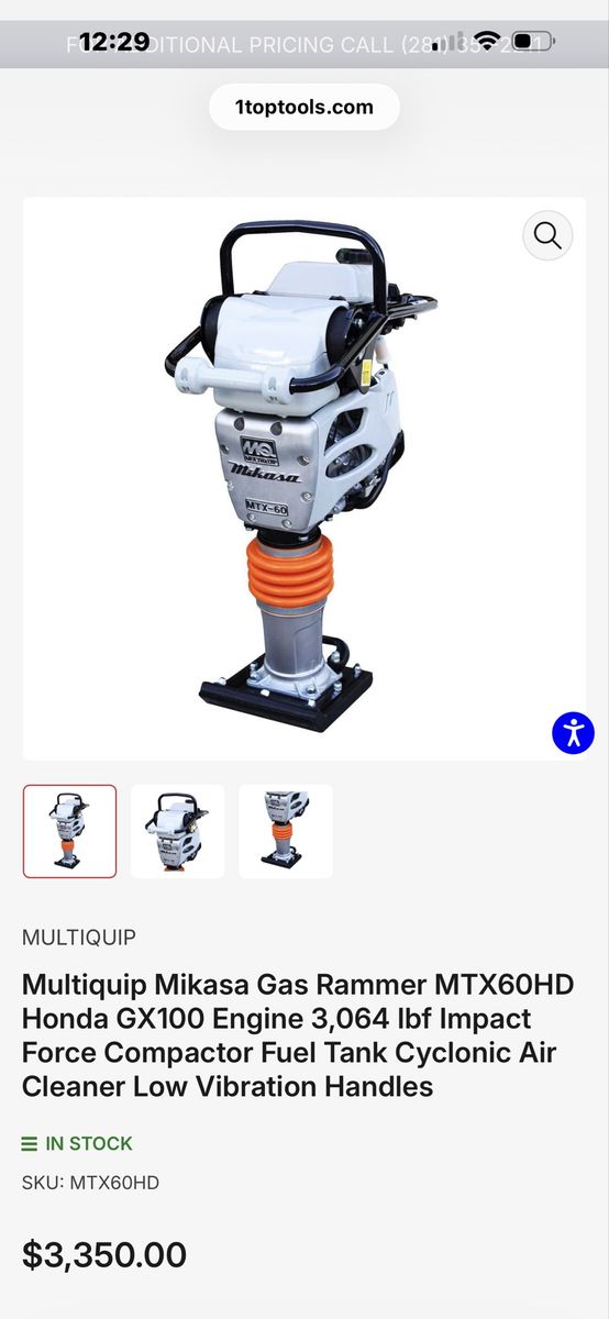 Mikasa compactor/tamper in great condition. Comes with tool only! Looks and works great! This exact unit is online right now for 3350.00 or more! You construction guys know how crazy expensive these are! plus tax as shown in photos! Don’t pay retail prices, call Dustin now instead at 801-205-3403, I need it gone!