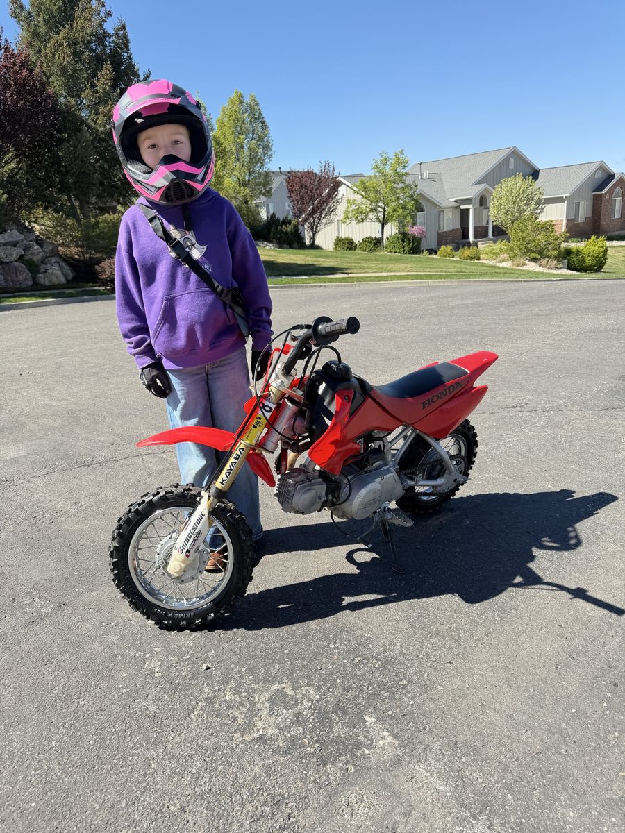 VenmoI have this fantastic Honda CRF 50. Runs great. Starts great even in the colder weather. We are the third owner. Since we have owned it I’ve installed a new carburetor and it has been jetted for higher elevation. Front and rear tires and inner tubes. Front and rear break shoes, new grips. It has all original plastics. This bike runs great, drives great and stops on a dime. My 7 year old daughter can start the bike with ease. If you’re looking for a bike for your little one this is it. Especially if you’re new to bikes like we were, this bike needs nothing but a new good home and a little rider to make memories to put into their file for years to come.