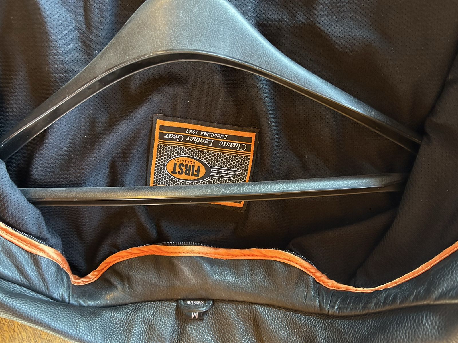 VenmoWomen’s medium high quality leather motorcycle jacket with liner. This jacket has all of the features expected from a first class jacket, venting, snap in liner, padding. Barely worn, like new